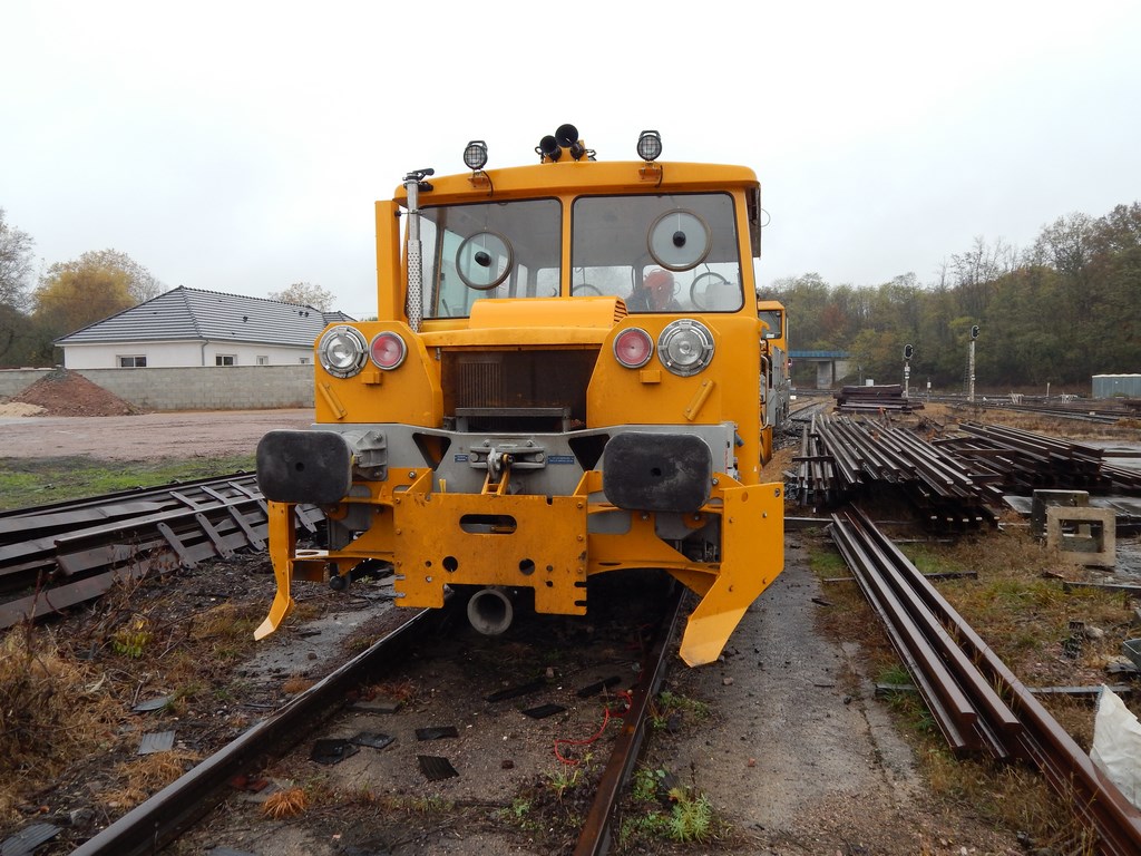 Jeannine est sortie du dépot et stoppe en gare quelques minutes le temps pour le draisinier d'éffectuer avec l'agent circulation les démarches necessaires pour lui reserver cette partie de ligne