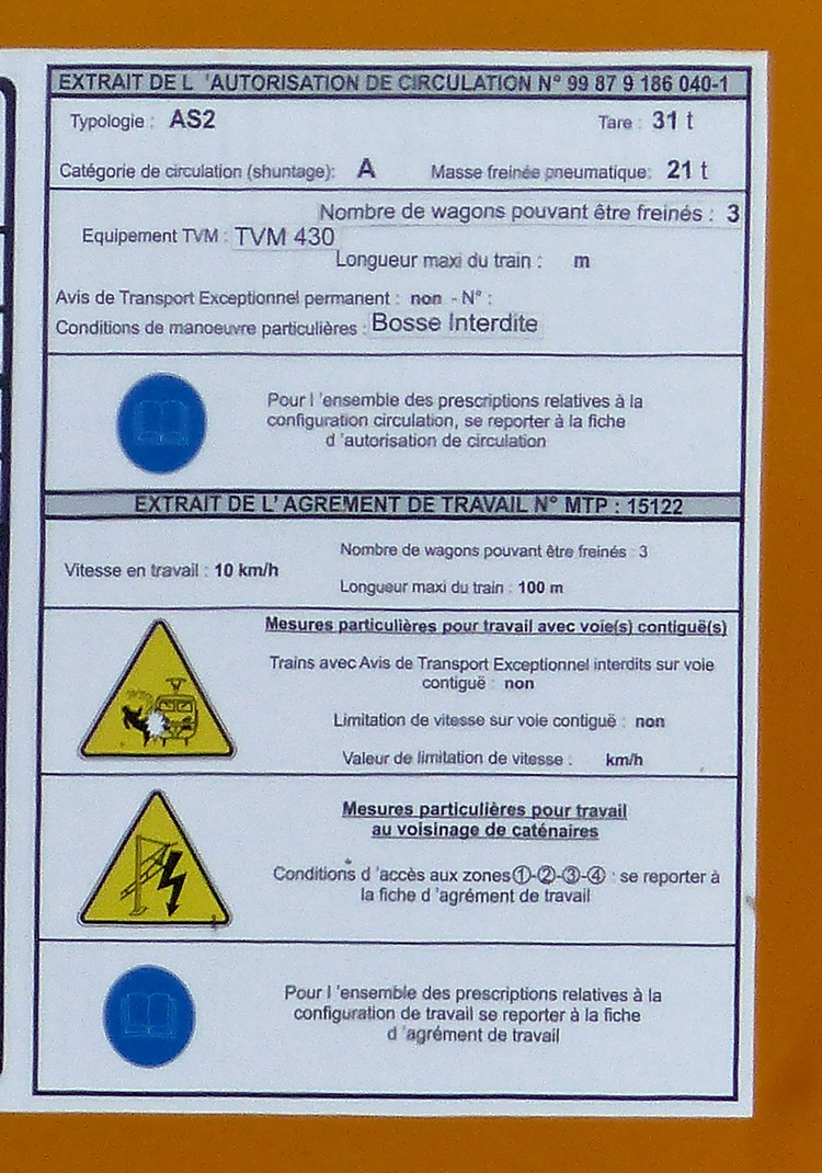 DU 84 RS LGV 9-820 - 99 87 9 186 040-1 SNCF RESEAU (Agrément de travail MTPP 15 122 - 25-05-2016 / 25-05-2016)