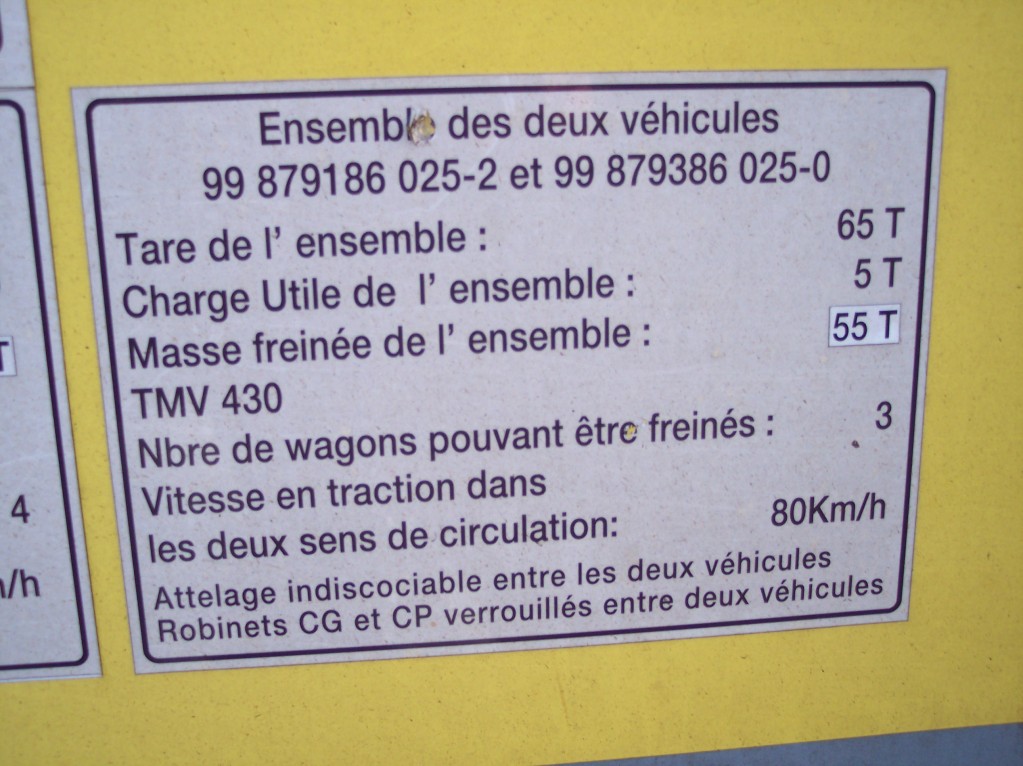 Voici les UIC des 2 wagons de cette draisine de voie :