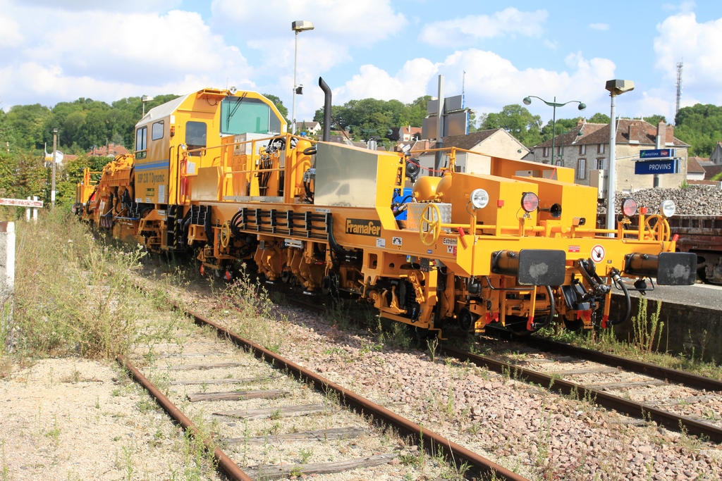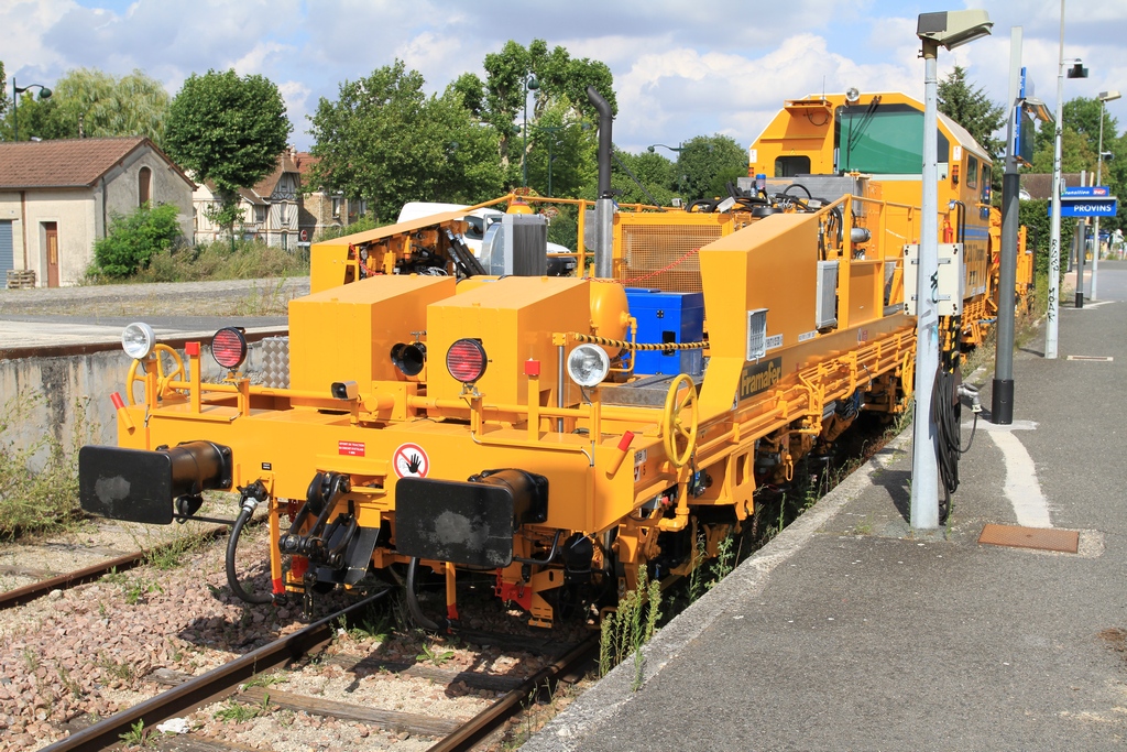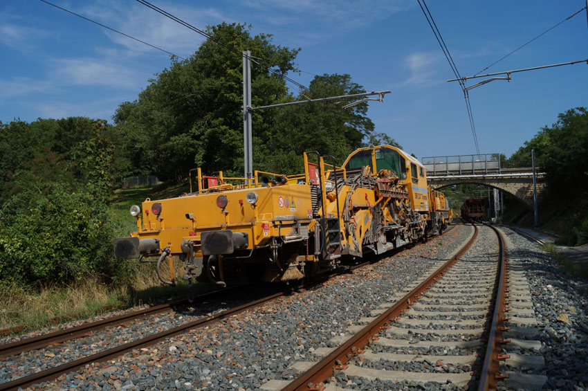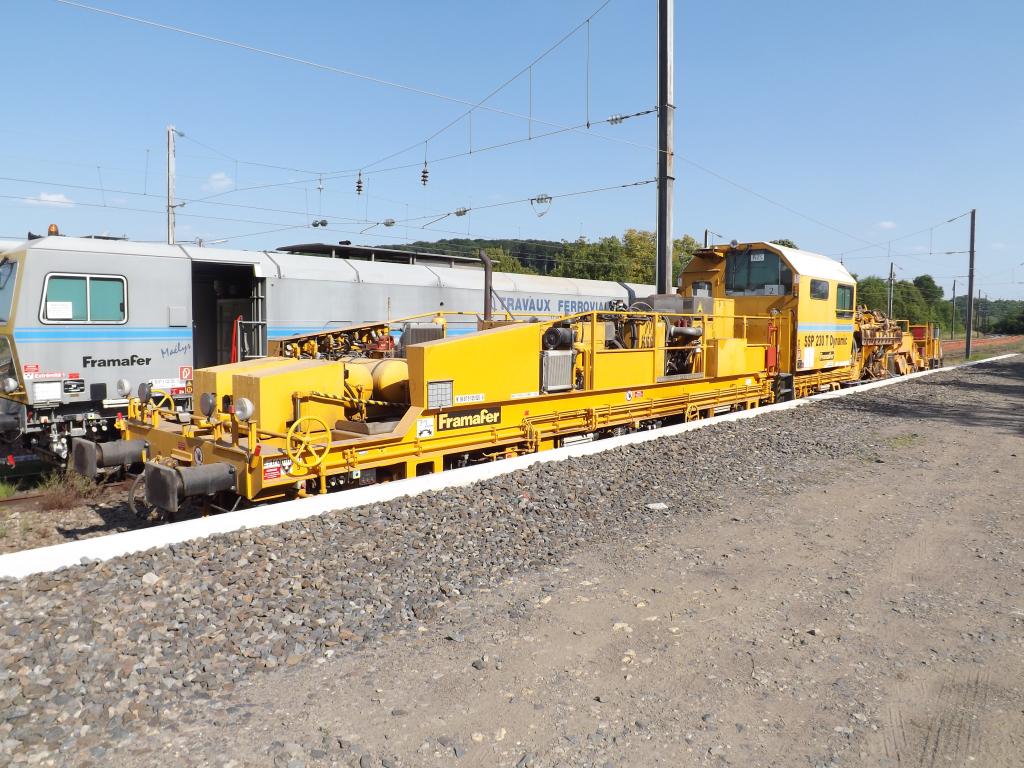 Voici notre régaleuse 125 520 le vendredi 1er août 2014, sur le chantier de renouvellement de voies sur la Ligne de Tram-Trains