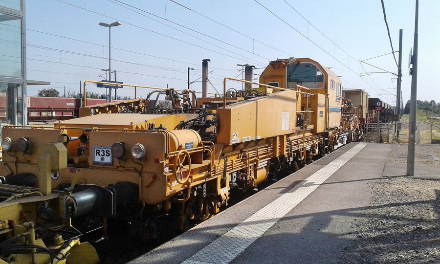 avec la Bourreuse d'appareils B66 UC - 99 87 9 124 554-6 de CLMTP ex Delcourt Ferroviaire