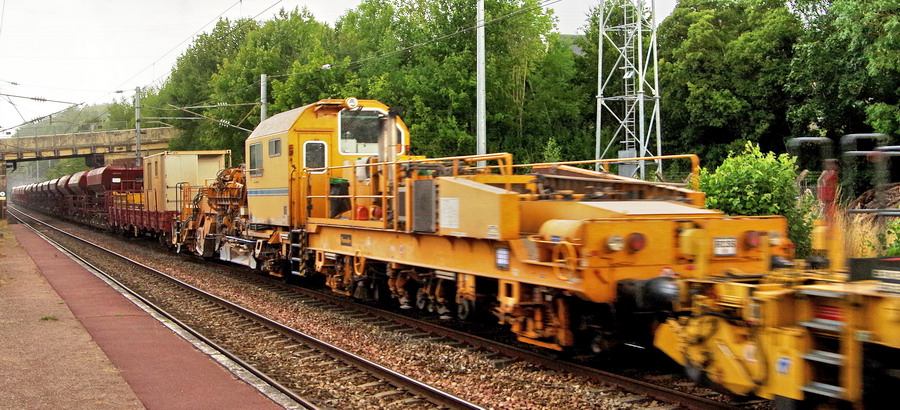 avec la Bourreuse d'appareils B66 UC - 99 87 9 124 554-6 de CLMTP ex Delcourt Ferroviaire