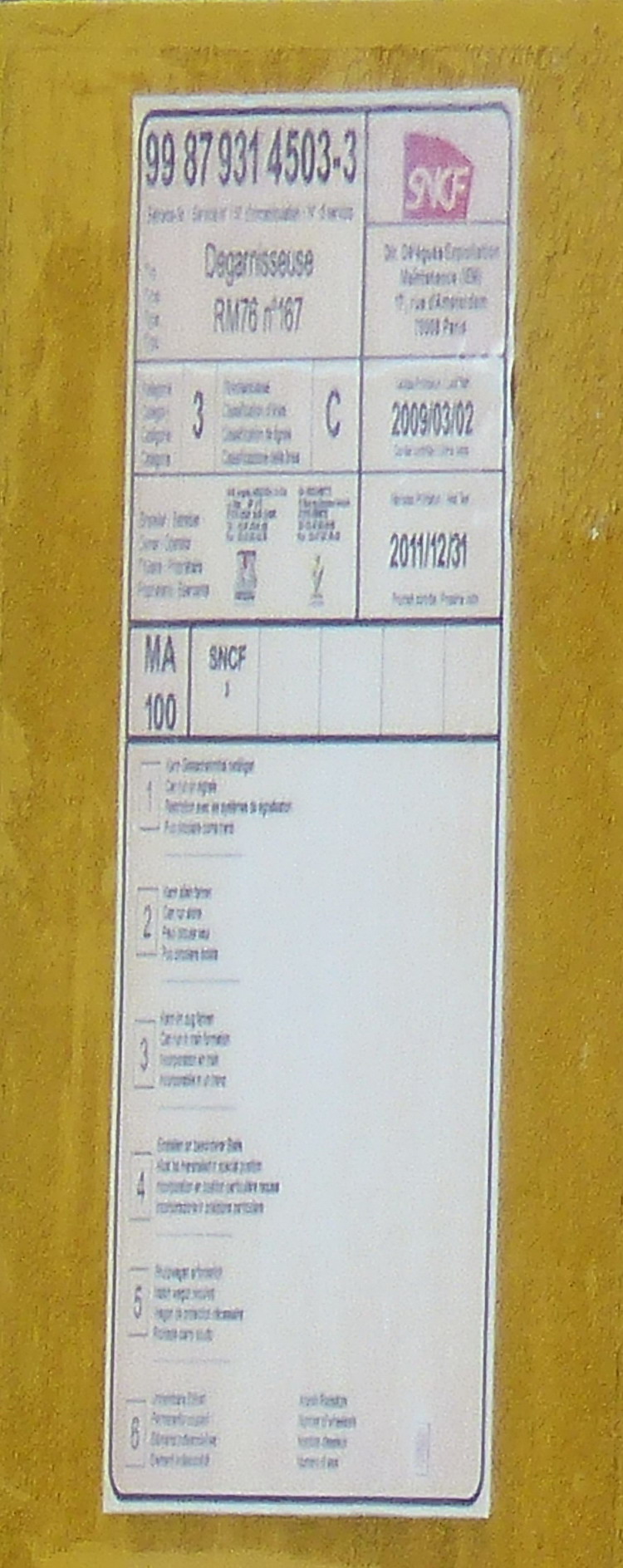 j'ai pu avoir son Agrément de travail de l'époque 02-03-2009 - 31-12-2011 avec son n° UIC 99 87 9 314 503-3 RM n°167