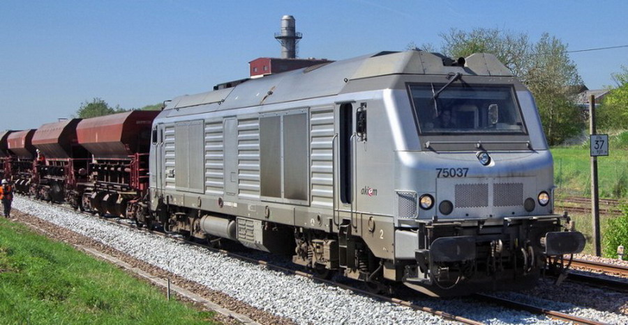 - Machine BB 75037 - 92 87 0075 037-7 F-AKIEM en location par Meccoli (ex Fret SNCF livrée verte)