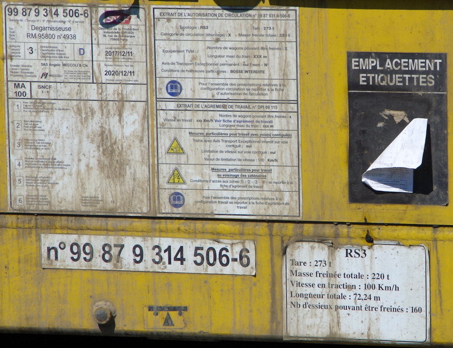 la rame n°DK2 avec la Dégarnisseuse - RM 95-800 AHM - 99 87 9 314 506-6 - Meccoli