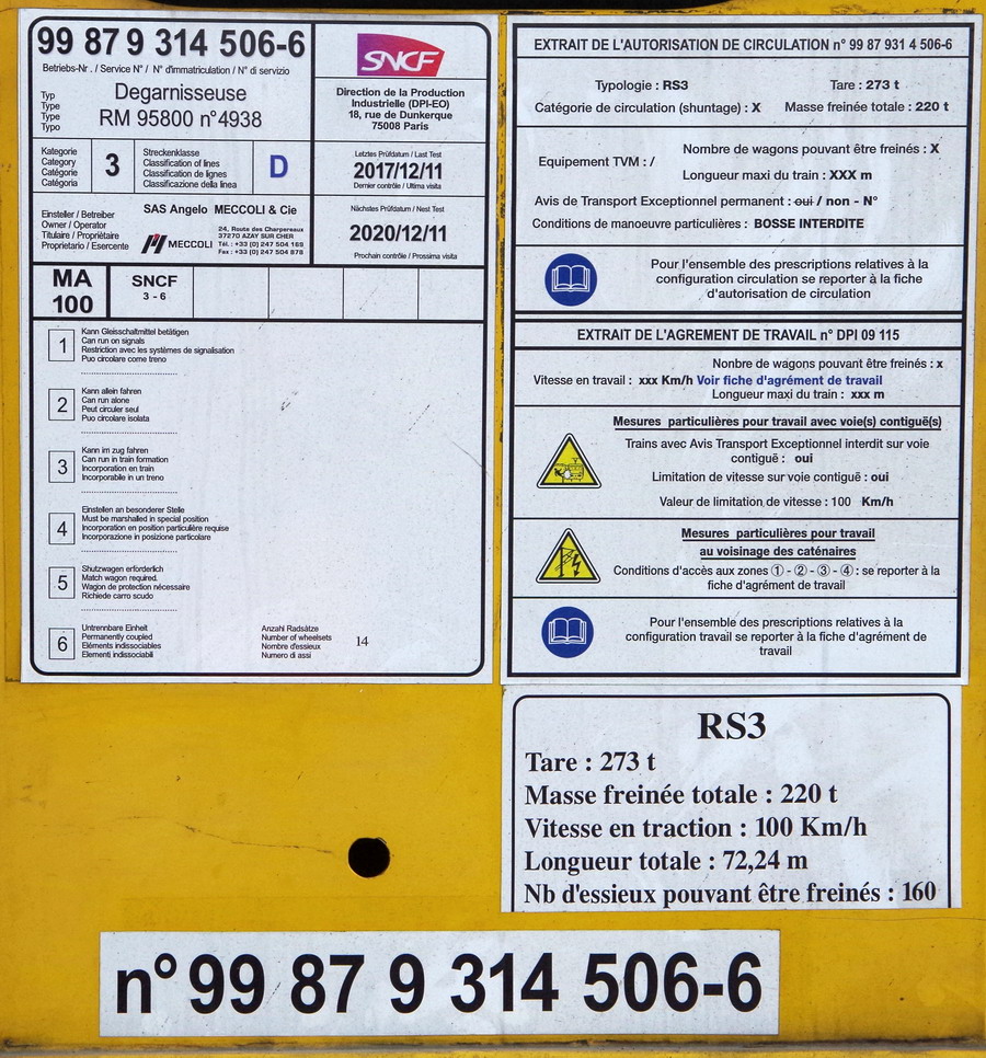 Dégarnisseuse RM 95-800 AHM - 99 87 9 314 506-6 Meccoli (Plasser & Theurer n°4938)