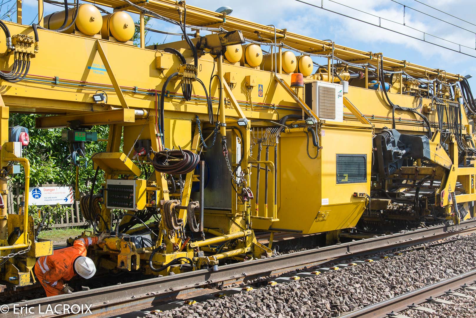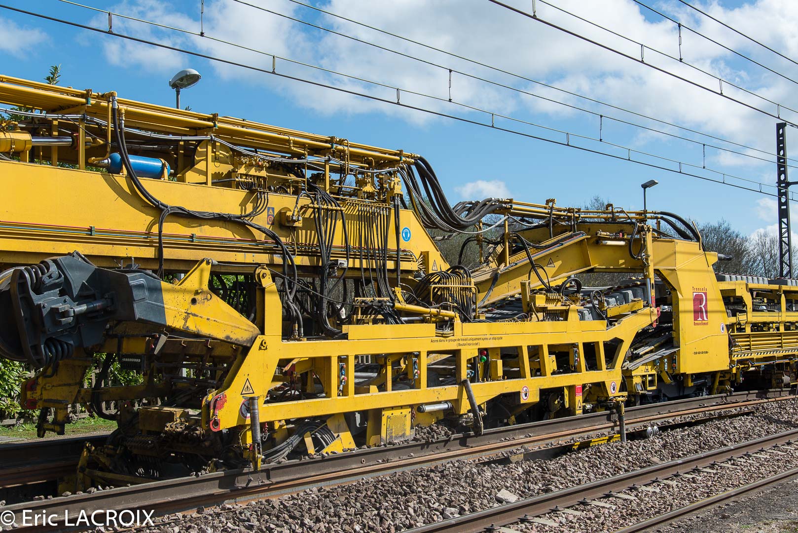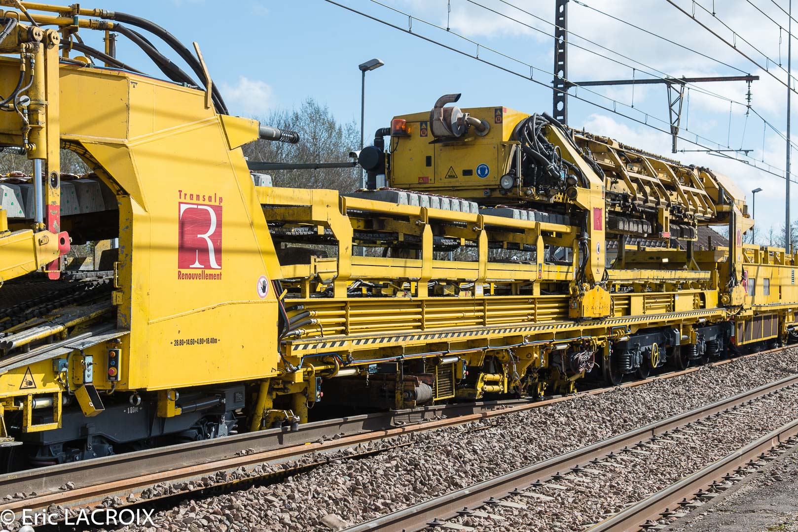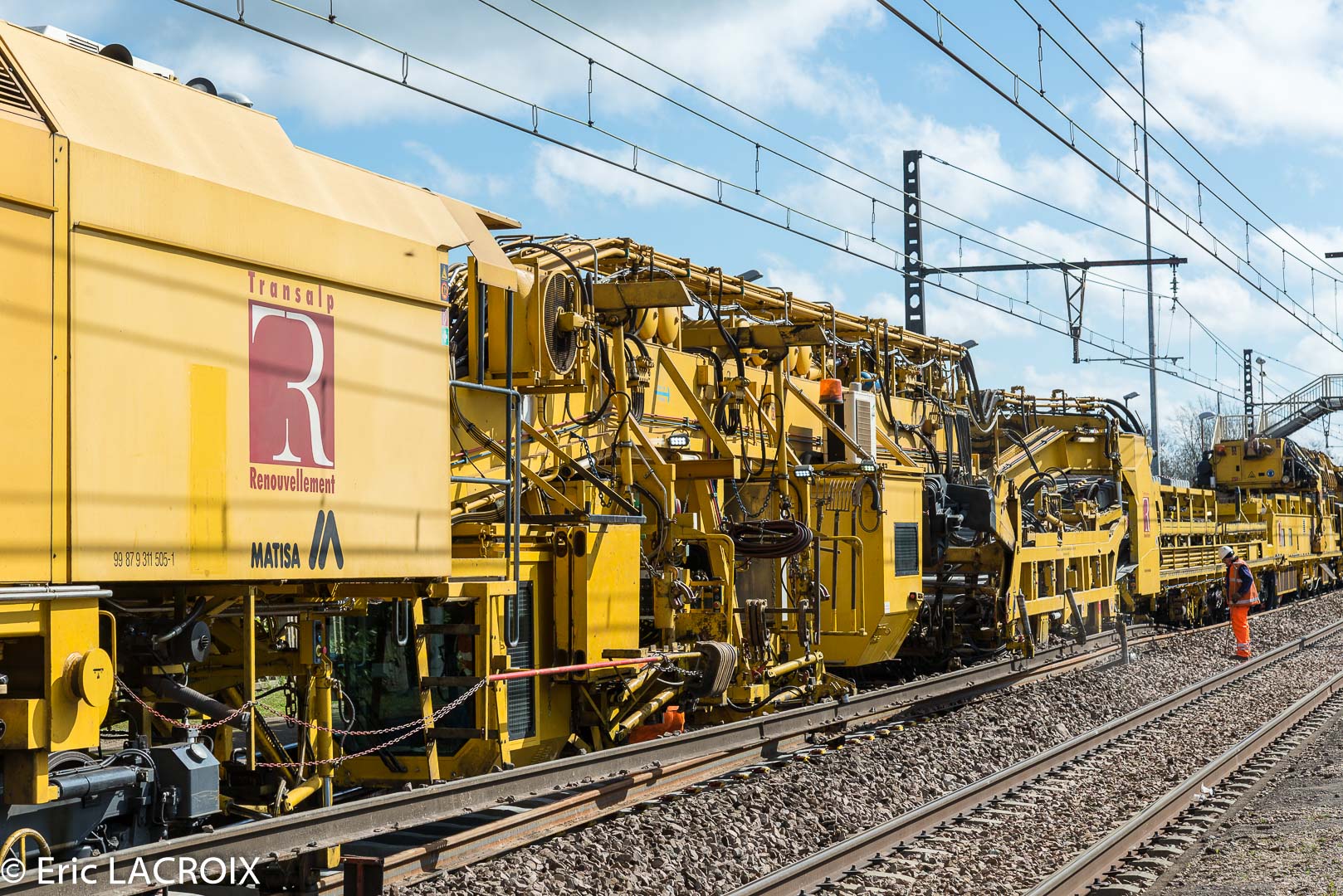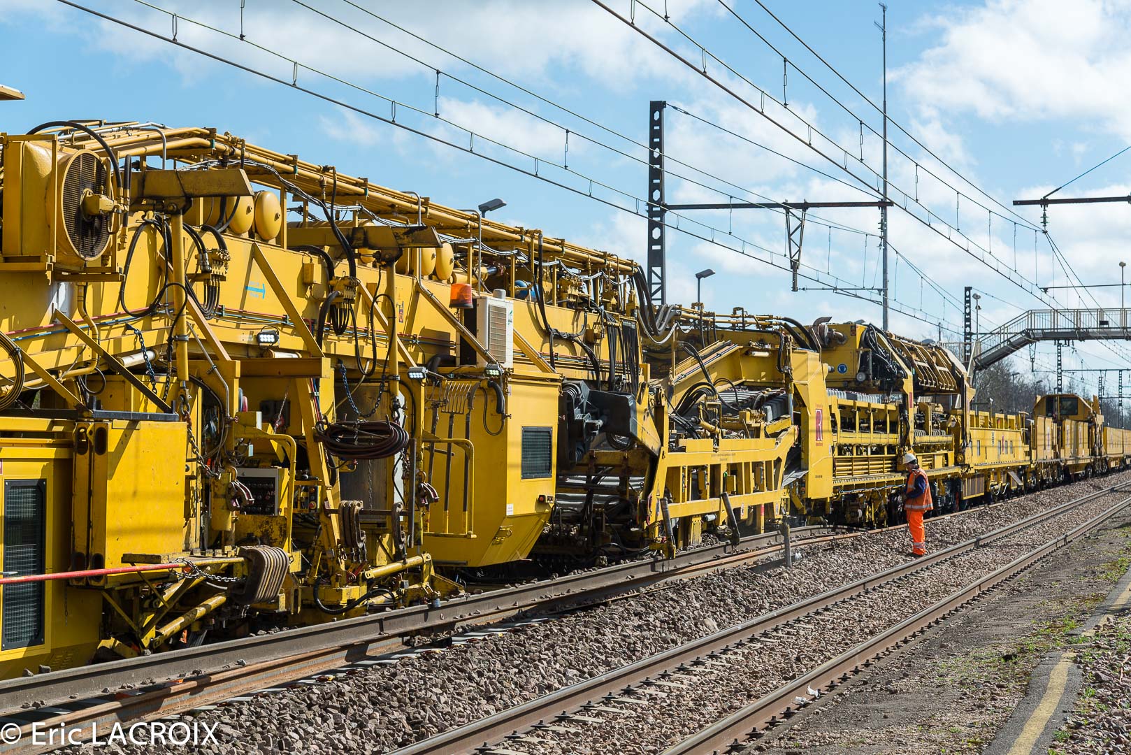 Train de renouvellement P95 MATISA Transalp Renouvellement à Villeneuve la Guyard le 22 mars 2017.