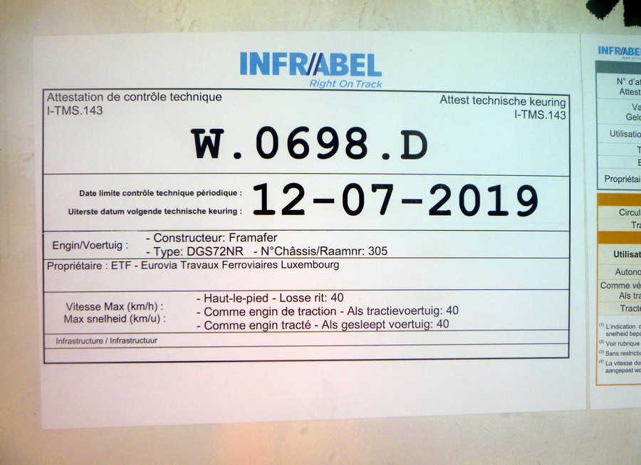 INFR/ABEL Attestation de contrôle technique : W.0698.D - 12-07-2019