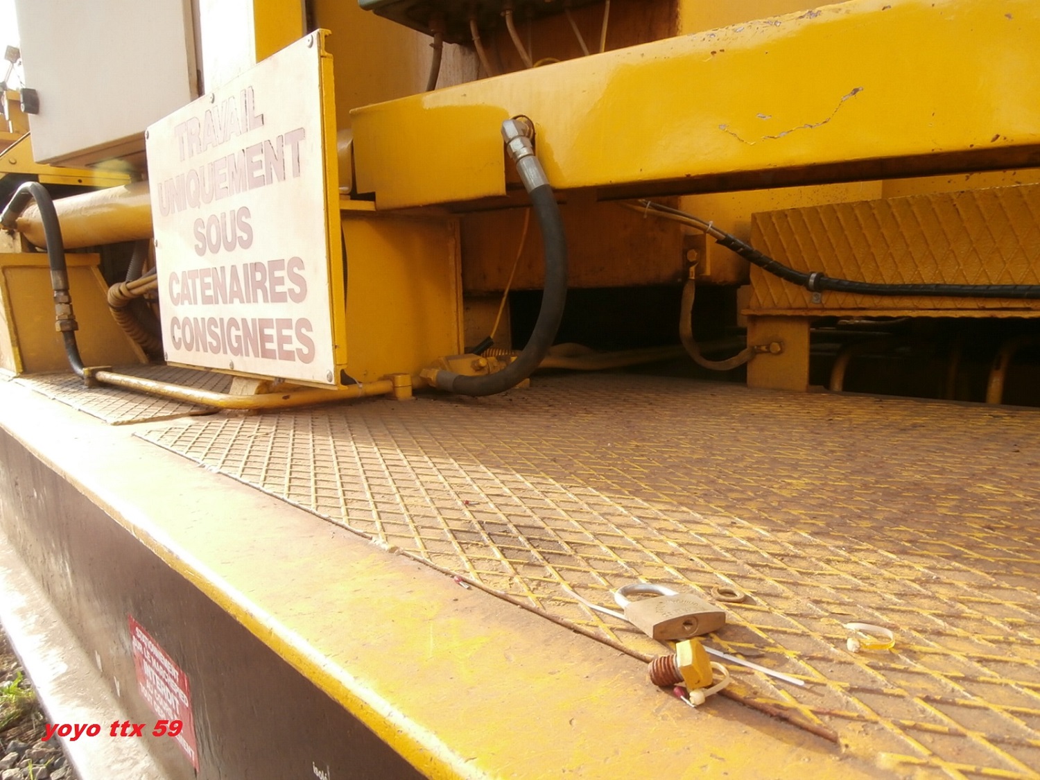Au moment des photos le CRAB II ce trouvait en sortie d'aiguille sur la voie droite et non sur la partie courbe ( donc bien en ligne droite ) .