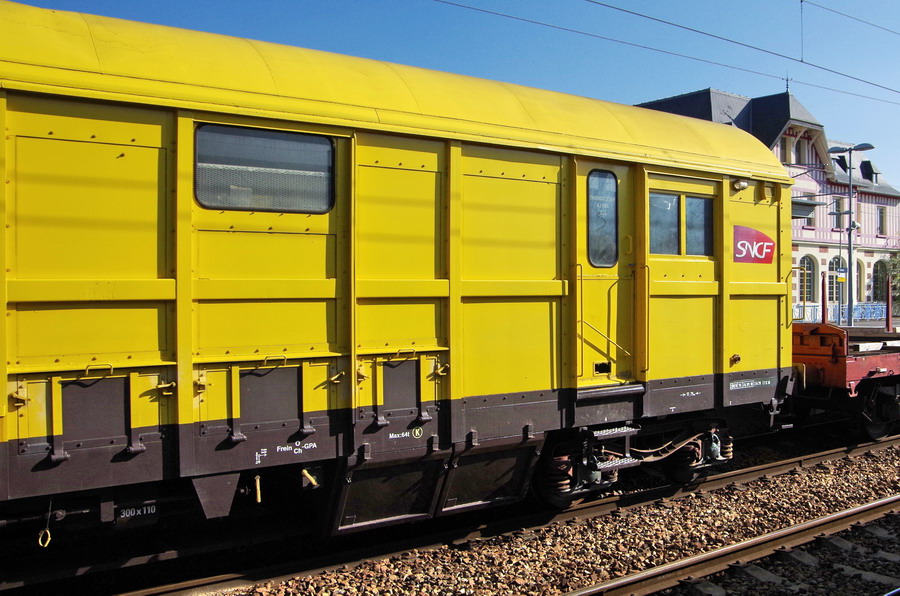 Voici le retour du wagon couvert sortant de révision en livrée jaune le 80 87 979 1 573-9 Uass H52 6 F-SNCFC