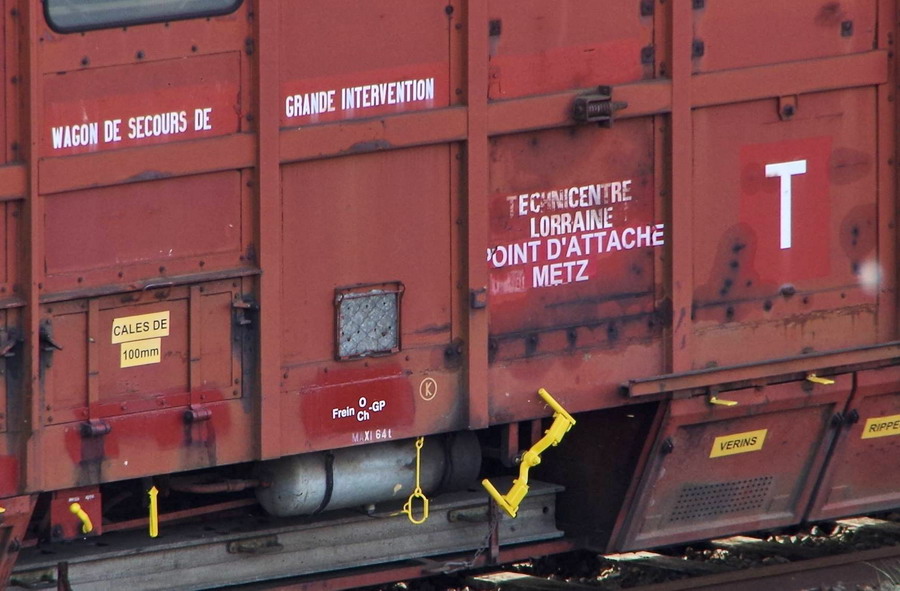 Le voici sortie de l'atelier de maintenance des wagons du Technicentre de Tergnier avec la voiture d'assistance et de secours ferroviaire