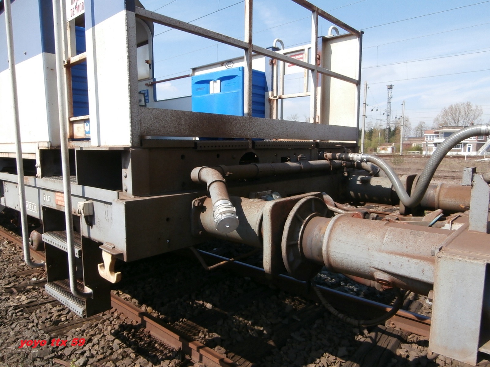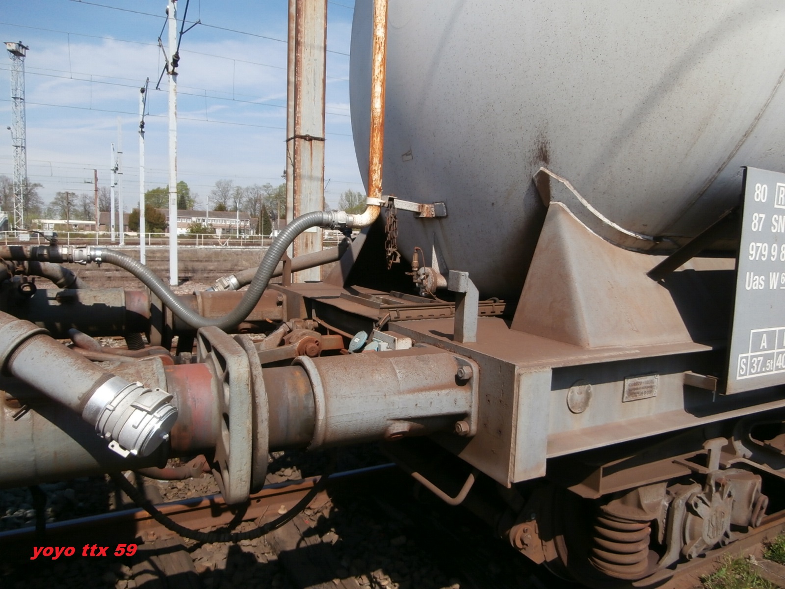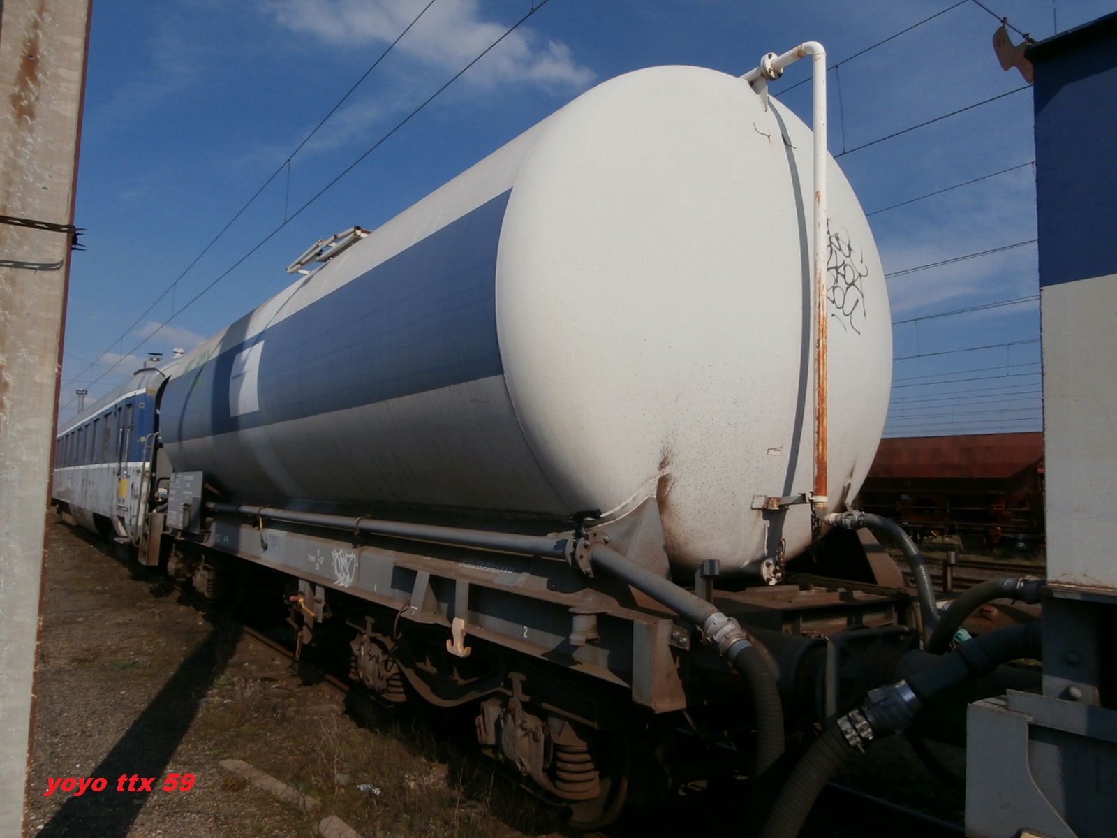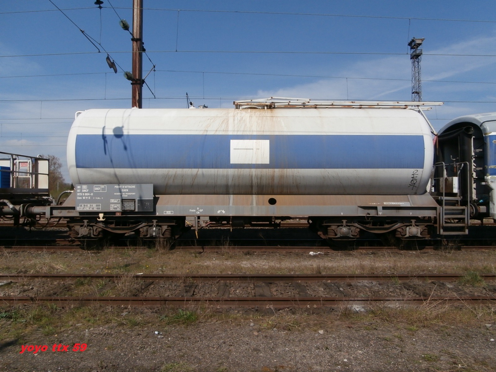 Voici le wagon citerne 80 87 979 9 804-0 Uas W64 6 SNCF-RO - Point d'attache Caen dans une rame laveur d'isolateur Ã