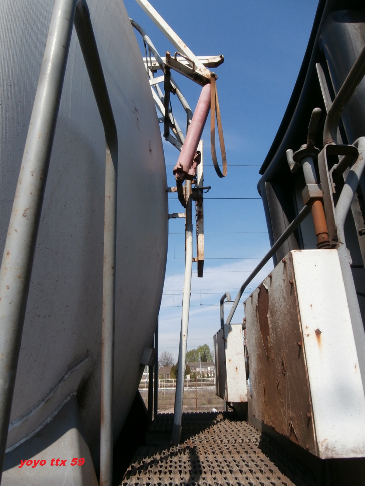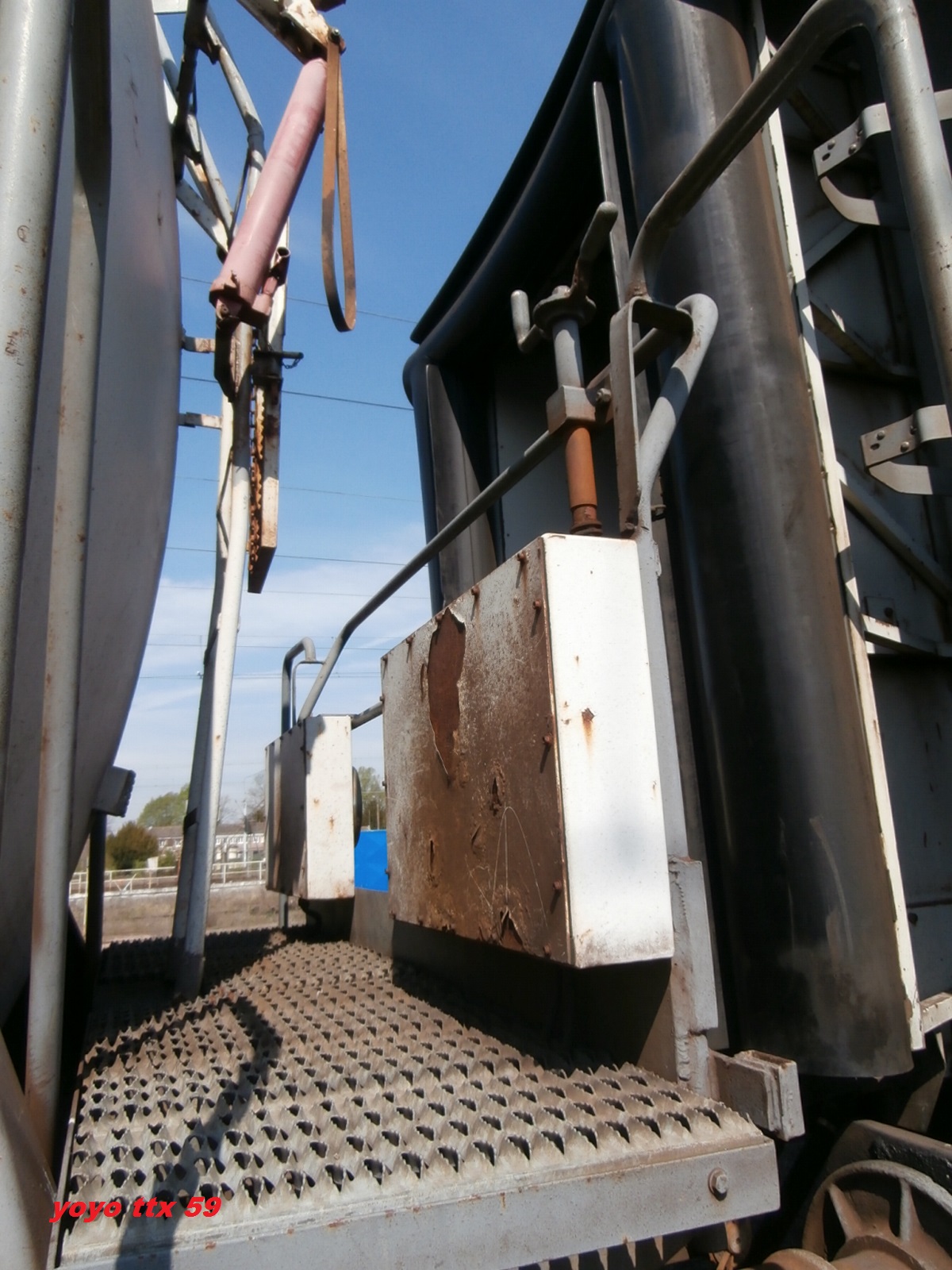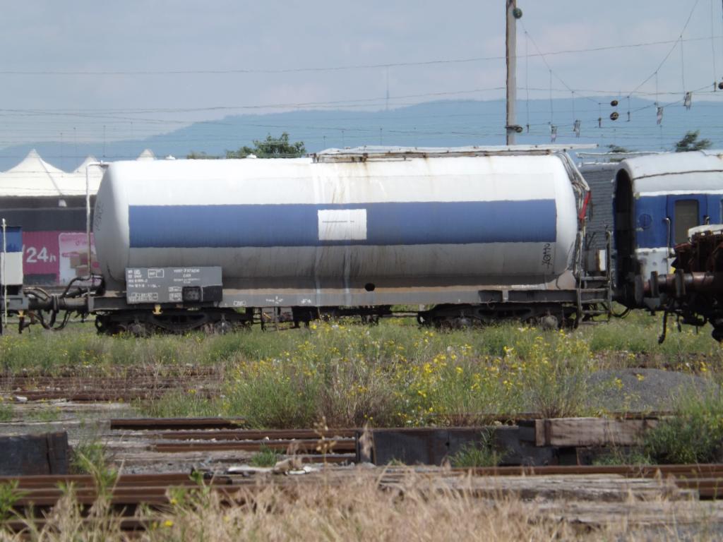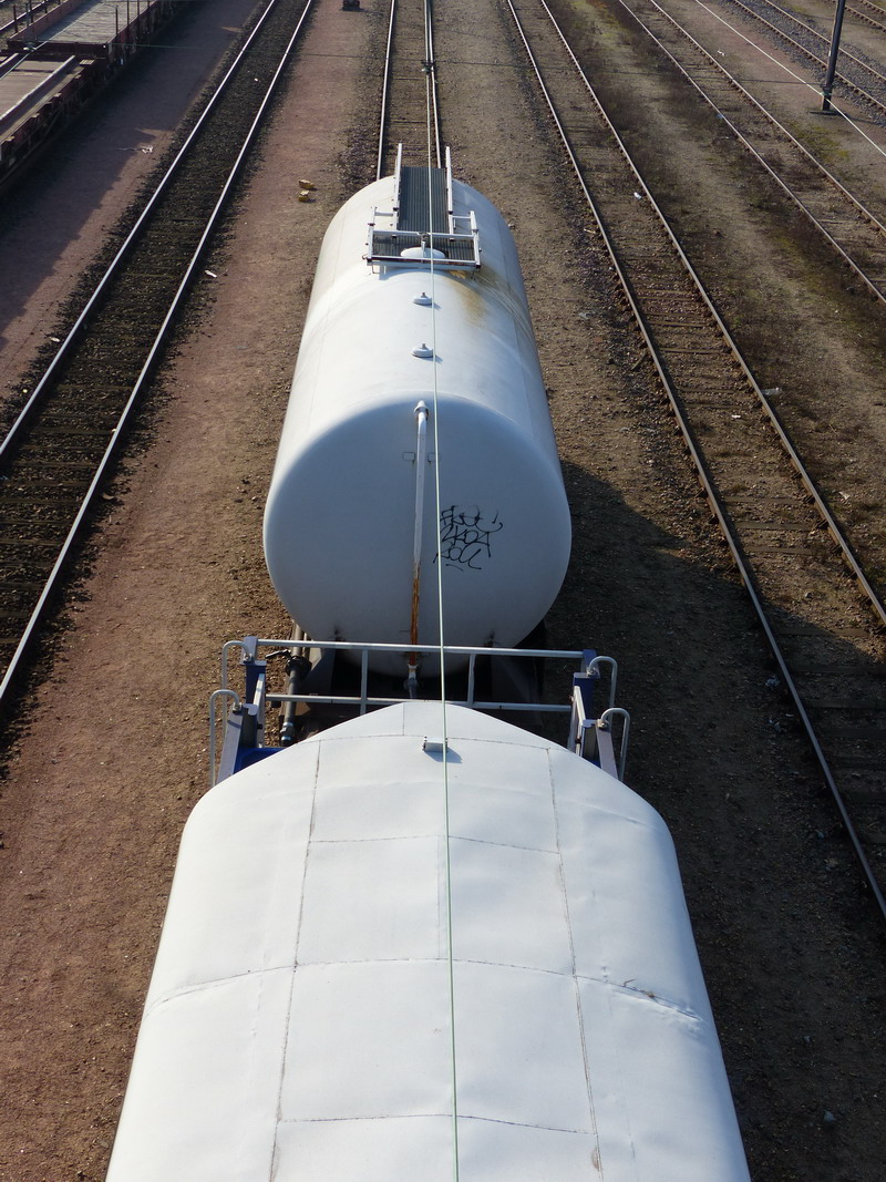 Voici le wagon citerne 80 87 979 9 804-0 Uas W64 6 SNCF-RO - Point d'attache Caen dans une rame laveur d'isolateur Ã