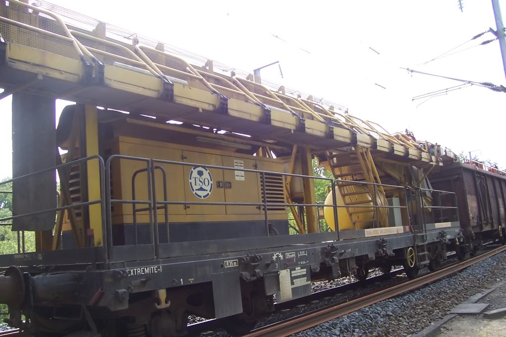 Voici une nouveauté ici (je pense), le 99 87 9 352 509-3, un "tapis-roulant" sur un châssis plat a bogies UIC (ou Y19 dans la vocabulaire SNCF), Rs ou auparavant Rory dans la vocabulaire SNCF.