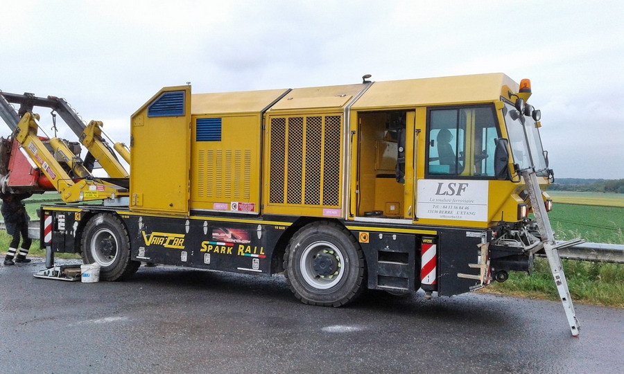 Le camion appartient à l'entreprise LSF du groupe Unifer.