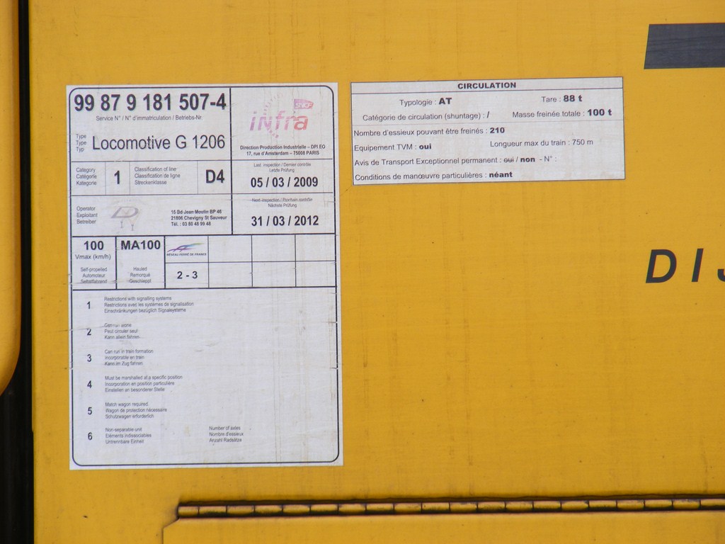 Je viens de doubler et de compléter mon album concernant la Dijonnaise de Voies Ferrées. Voici la G 1206 N° 99.87.9.181.507-4