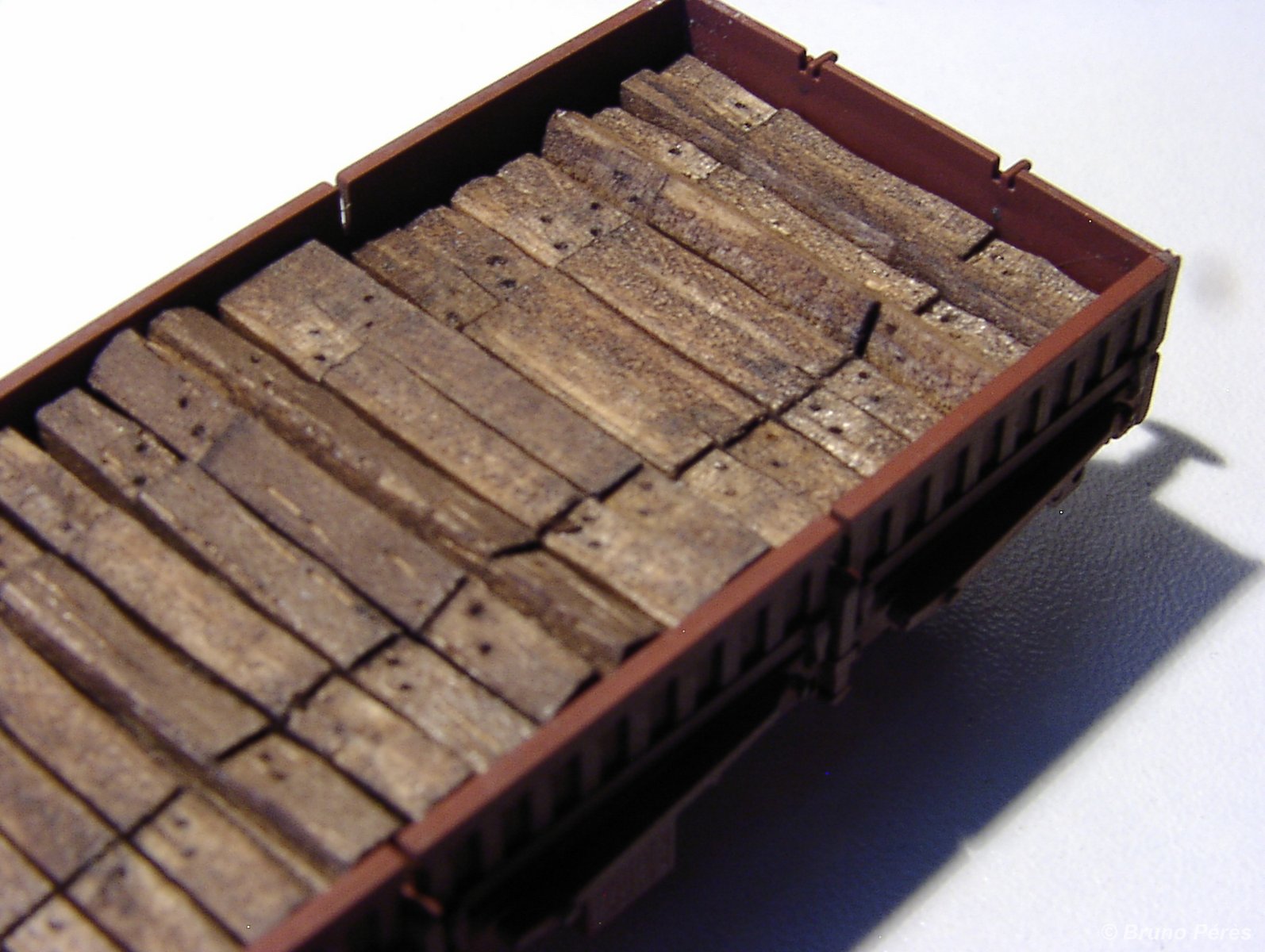 Le chargement est fait de deux couches de traverses. Seule la couche du dessus comporte des traverses détaillées.