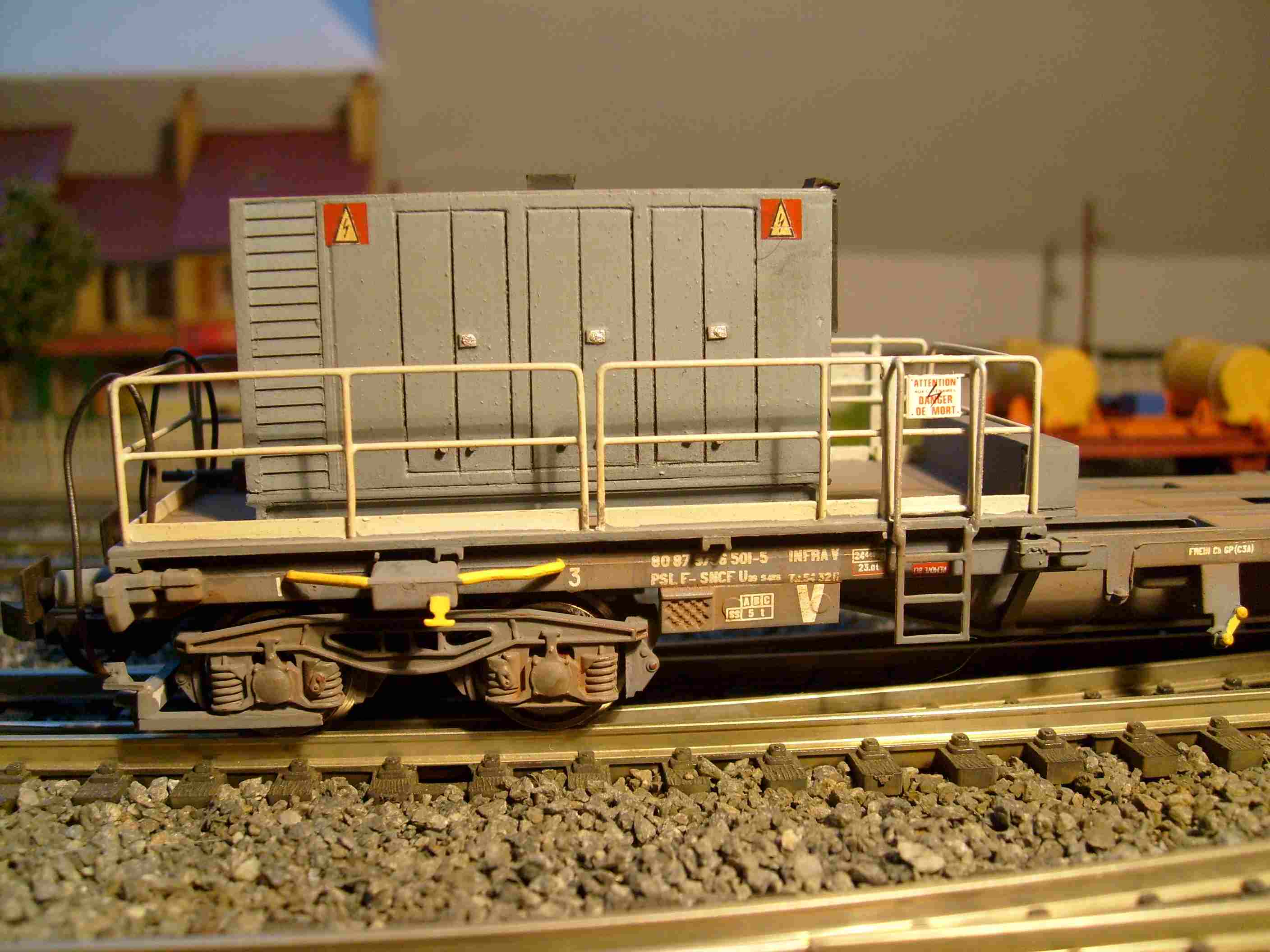 Tiens, un détail qui m'interpelle: l'unité groupe-plateau serai juste "posé" sur un wagon porte-container (enfin, fixé comme un container), on pourrait donc le voir apparaitre sur d'autres types de wagons porte-container, plus courts par exemple.
