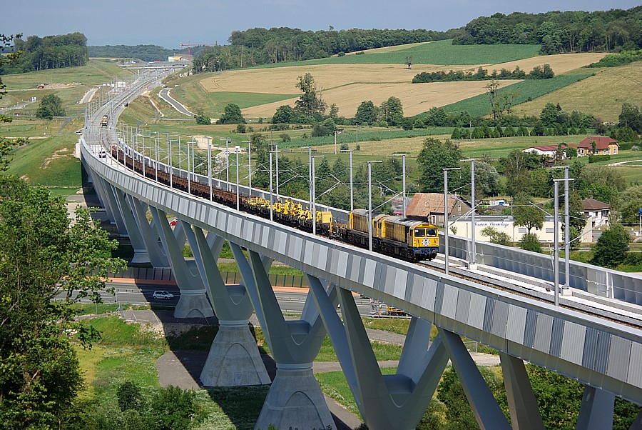 Départ de la gare TGV de Moval, à 20h15 environ, d'un train de chantier géant, à destination de la base de Villersexel, avec les engins de traction suivant :