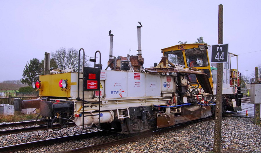La voilà en action au niveau du PN n°46 de la gare de Jussy (02) PK 70 pour le RVB de la ligne Laon Amiens