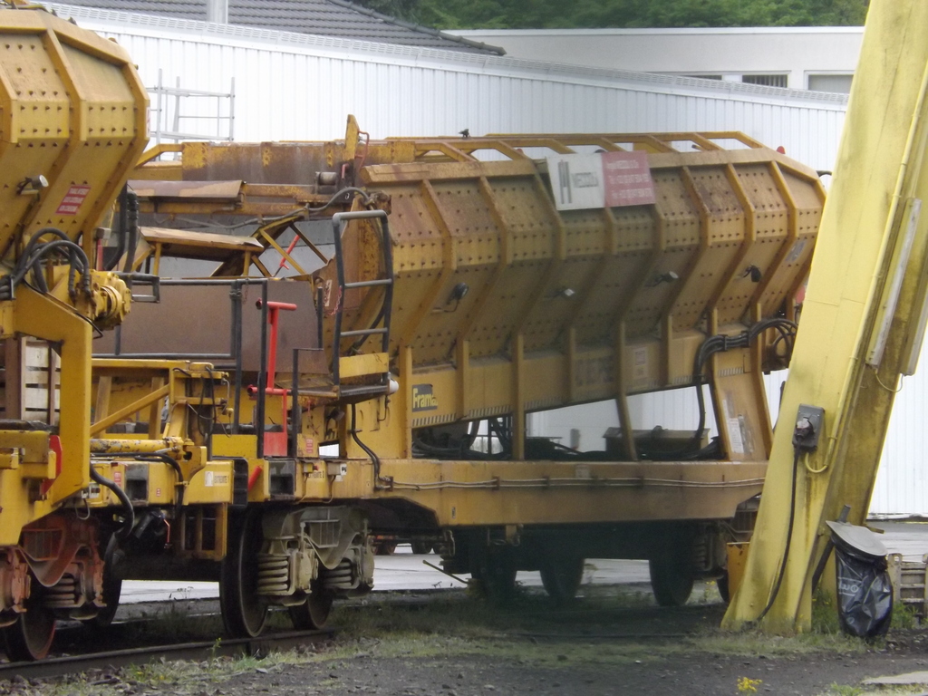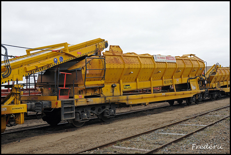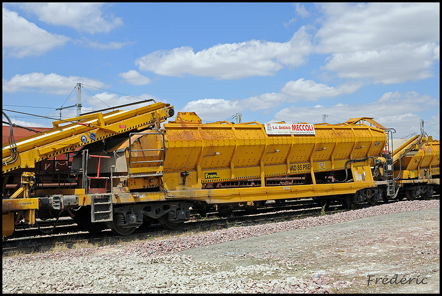 Le VAD 85 PSE N°281 de Meccoli se trouve sur les voies de garage des rame Infra/SNCF avec le wagon trémie de protection VAD