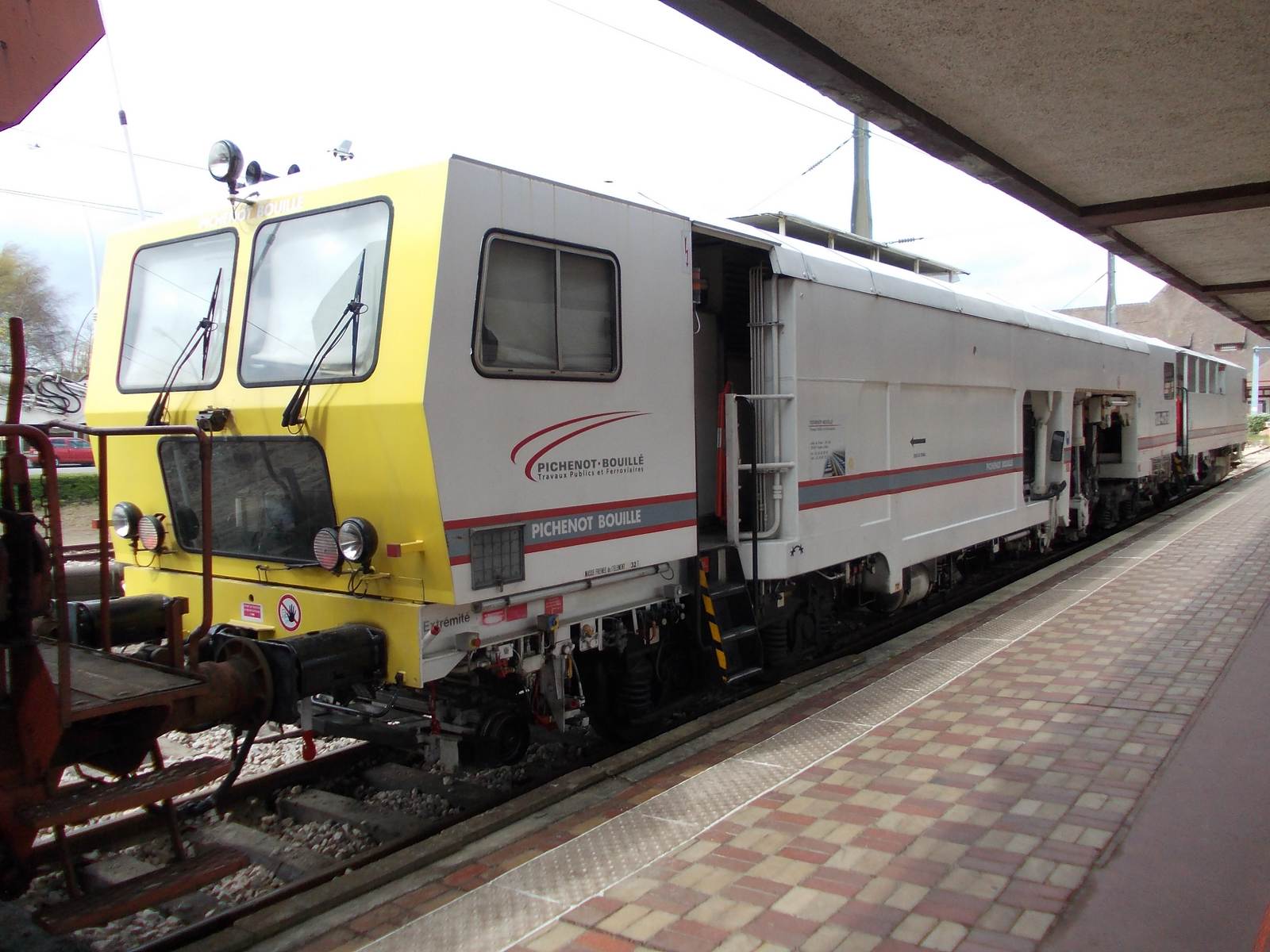 Il s'agit d'une bourreuse d'appareil Framafer 108 475 S de l'entreprise Pichenot Bouillé.