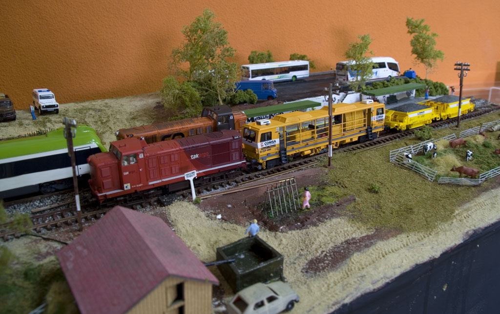voila quelques photos de la stabilisateur de voie DGS 62 N au couleur de l'entreprise FERGRUPO sur une maquette construit avec "Modules Norme Maquetren" produit pour des enthousiastes portugais de modélisme ferroviaire.