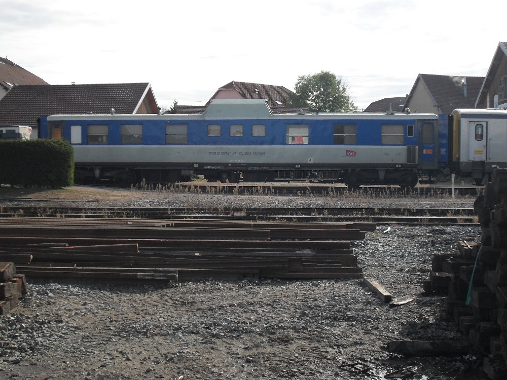 Ces trains sont des V120, donc il faut 2 voitures entre les 2 66000... En début de tournée dans le nord il n'y avait que la 216, il fallait donc une voiture pour le poid frein d'où la présence de cette UIC A8x. Puis la 171 est venue rejoindre la 216 pour les mesures. L'A8x devient certe inutile, mais il faut bien la ramener à Villeneuve désormais.