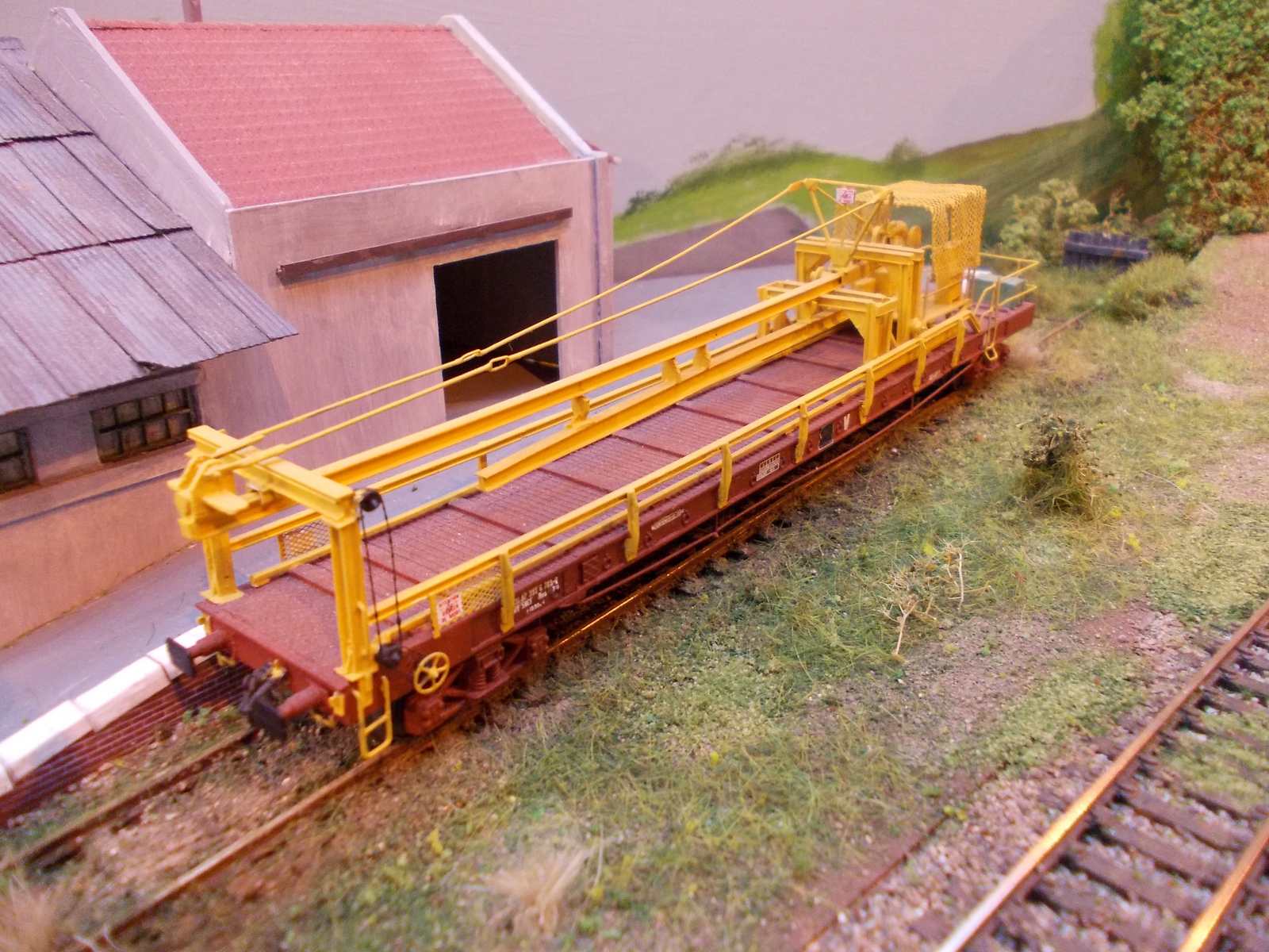 C'est un MAPAV : wagon de MAnutation de Pièce d'Appareils de Voie. Il sert tout simplement pour la pose et la dépose d'éléments d'appareils de voie.