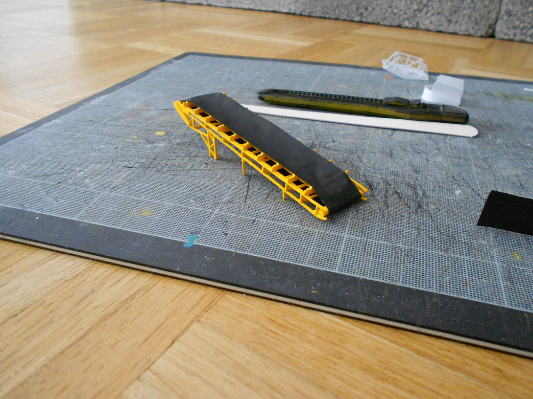 Des pièces de convoyeurs sont mise en place, la peinture faite et le tapis mis en place
