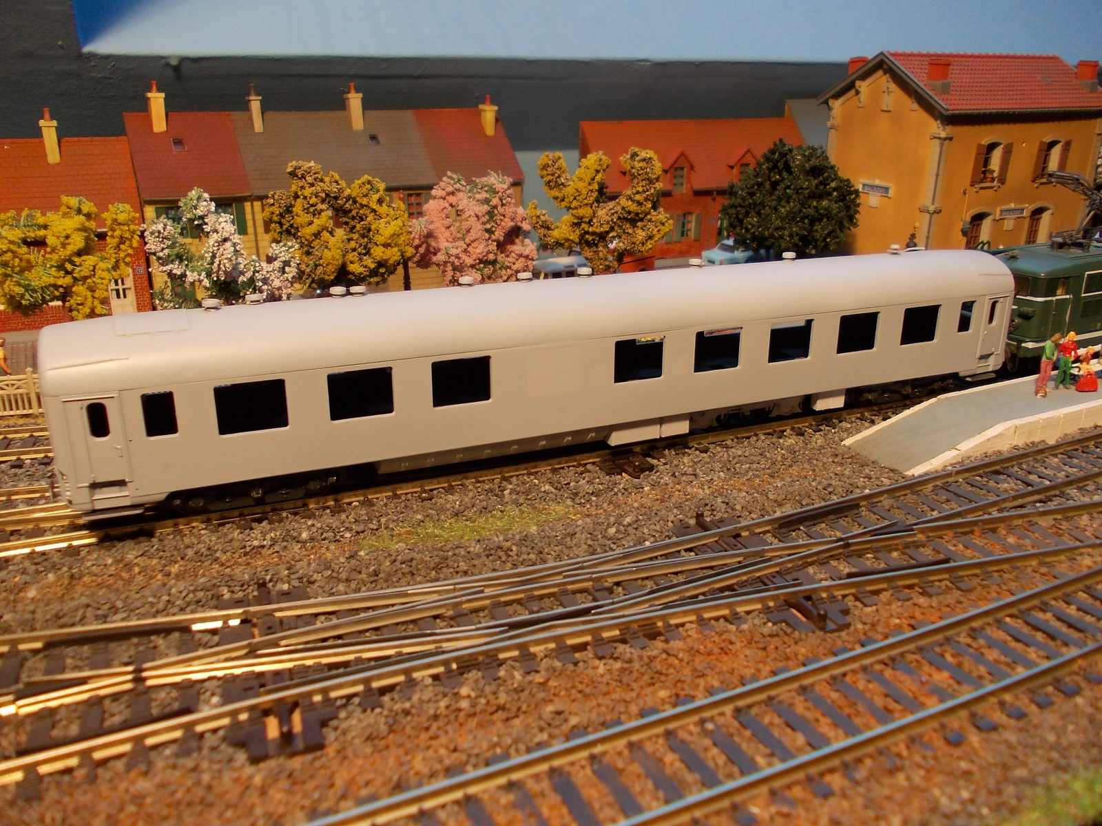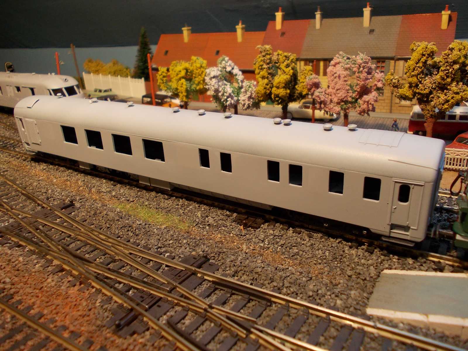 Voici ma dernière nouveauté en cours ,la voiture de mesures V3 , réalisée sur une base A9 UIC Roco. La peinture sera peut être appliquée prochainement car, comme Florian ,je peins en extérieur. En ce moment les températures ne sont pas encore terribles et le retard des finitions commence à s'accumuler :( ,vivement le bon temps. :D