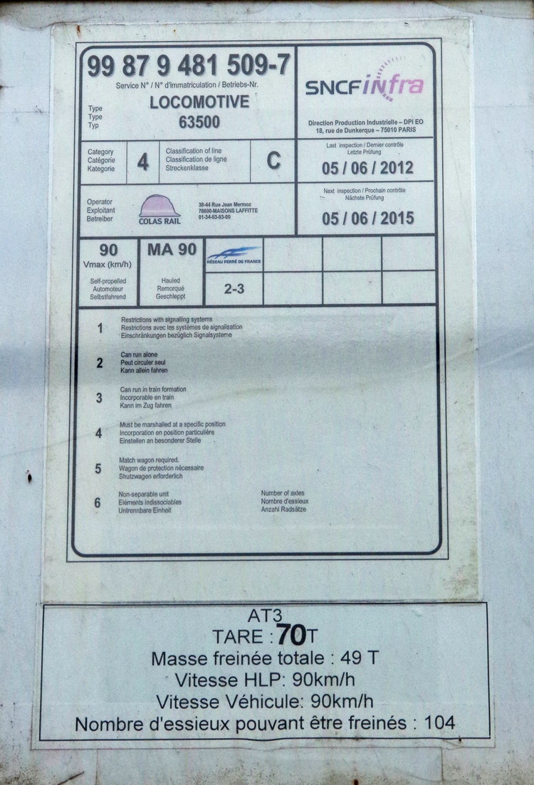 Re: BB 63000 - 99 87 9 481 509-7 - Colas Rail