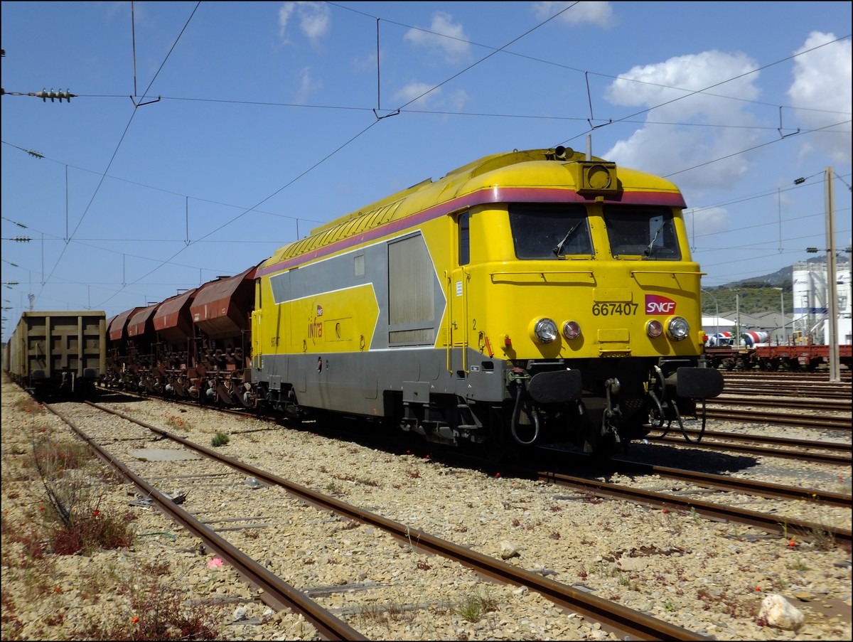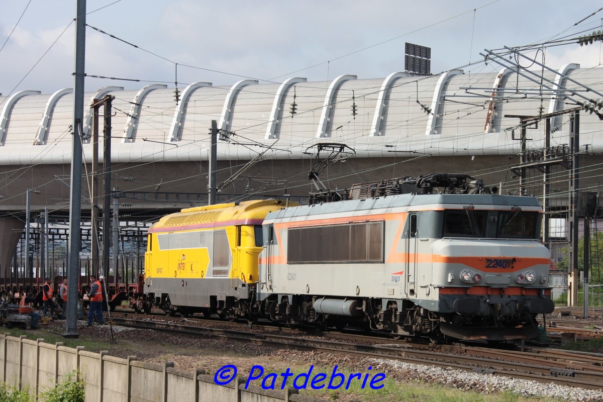 en compagnie de la BB 67412 Infra qui arrivait de Montbéliard avec plus de 30 wagons vide mais qui en à laissé la moitié a Belfort pour continué son chemin sur Giromagny