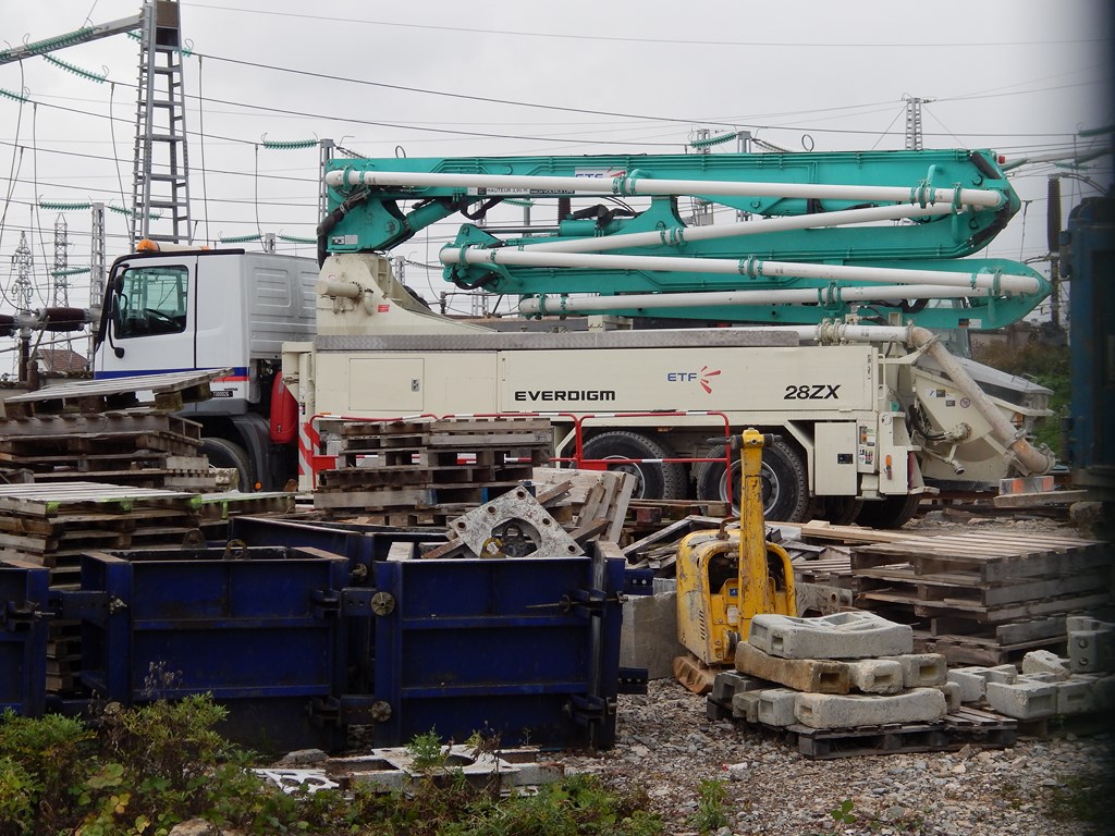 mercedes actros 2636 pompe a béton, utilisé sur le chantier du tram bisontin, un engin peu courant