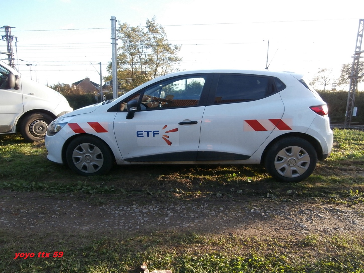 Il s'agit de la Clio DA377JB 62a Hazebrouck le 19/10/2014 sur le chantier de changement d'appareils de voies :