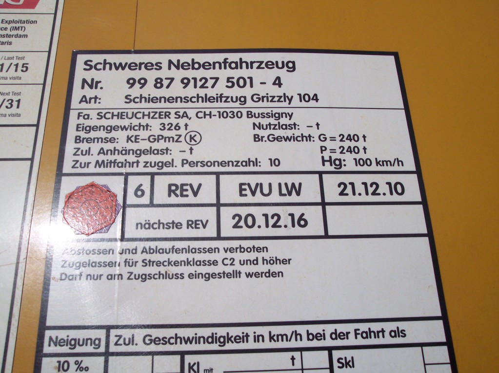 En faisant bon petit tour :siffle: extérieure de l'entreprise Matisa, je suis tombé sur le train meuleur grizzly 104 je mets les seuls photos que j'ai car il étai sous un hangar