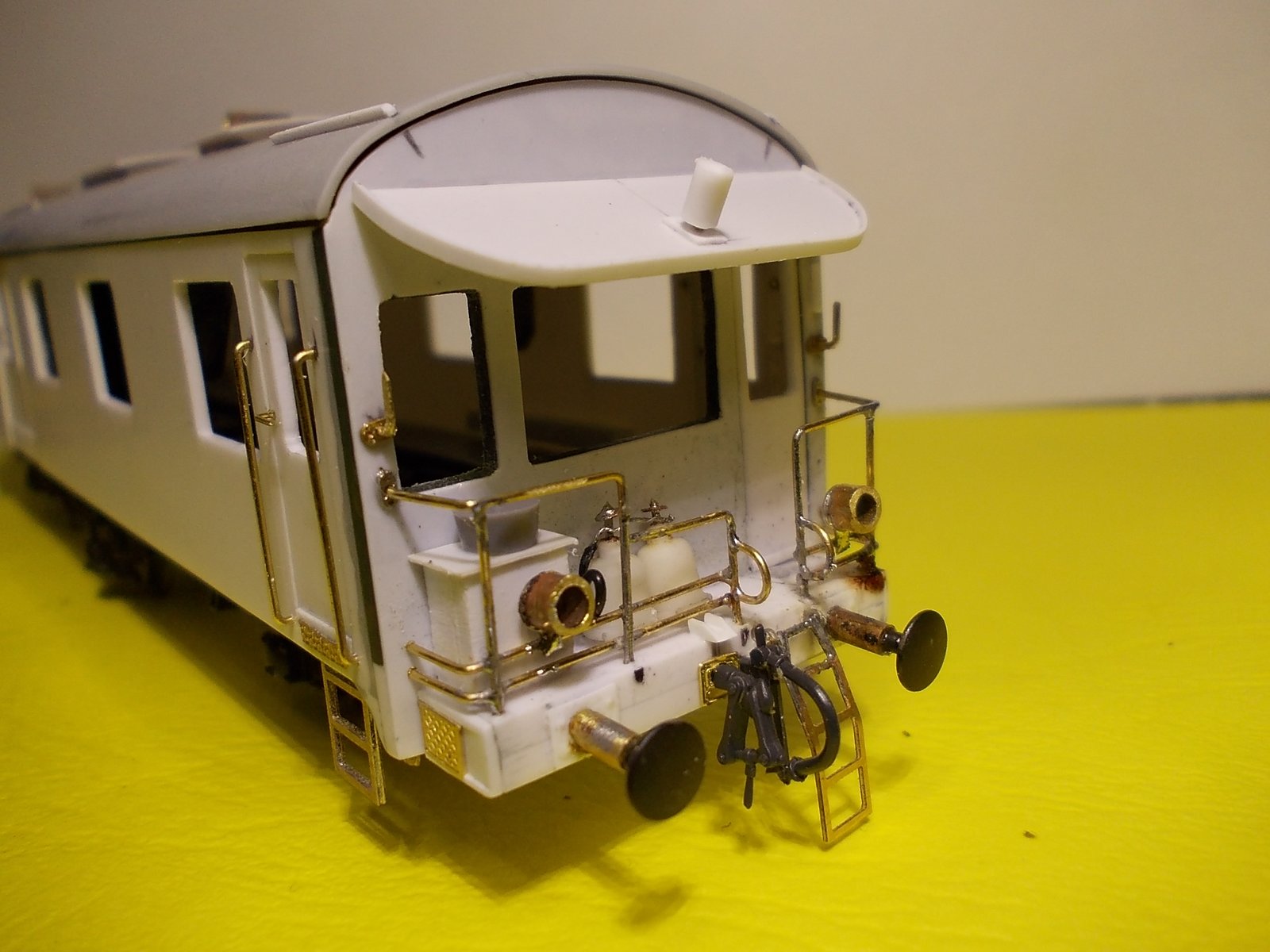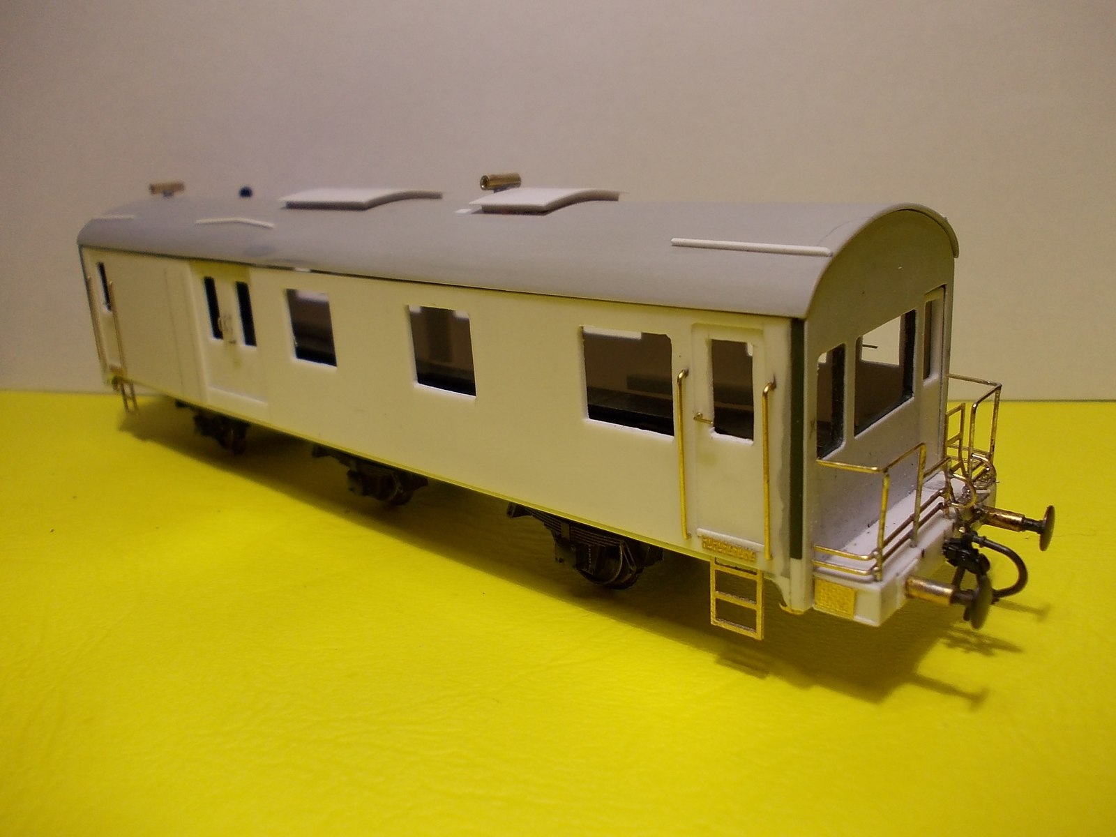 La base utilisée,enfin ce qu'il en reste est une "trois pattes" Fleishmann,une partie de la caisse bien réduite,la toiture et les organes de roulement.