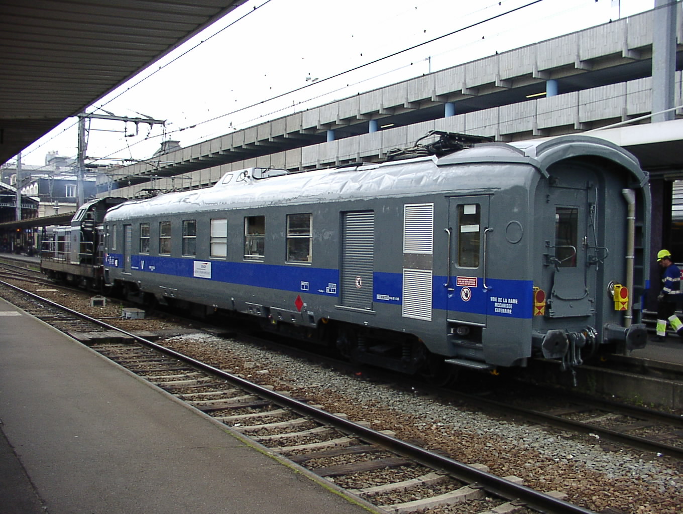 Confirmation, il s'agit bien d'un wagon graisseur de caténaire qui a subit une révision générale chez PVI en avril 2005. Je l'ai d'ailleurs shooté au départ de sa toute première campagne après révision, le 13/04/2005.