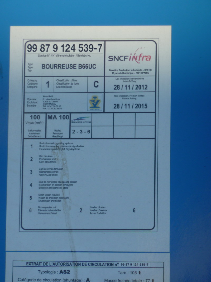 99 87 9 124 539-7 Type B 66 UC (2014-05-14 St Pierre des Corps) Bourreuse Vecchietti (2).jpg (194.49 Kio) Vu 4814 fois