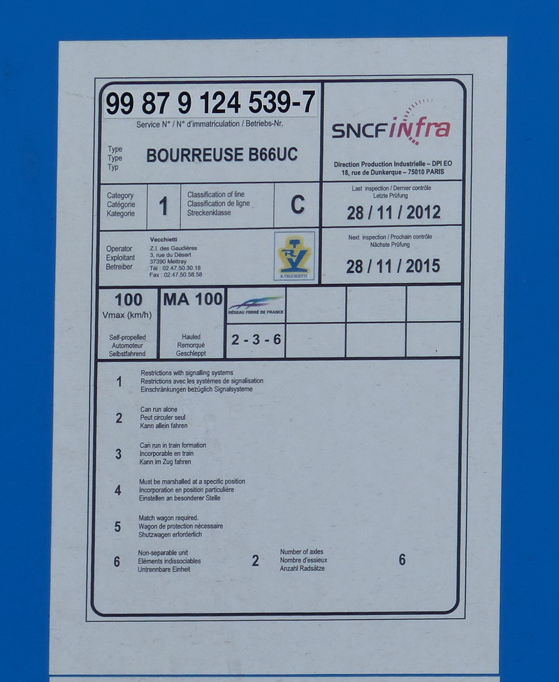 Voici la Bourreuse d'appareils 99 87 124 539-7 Type B 66 UC de Vecchietti à Saint Pierre des Corps 37