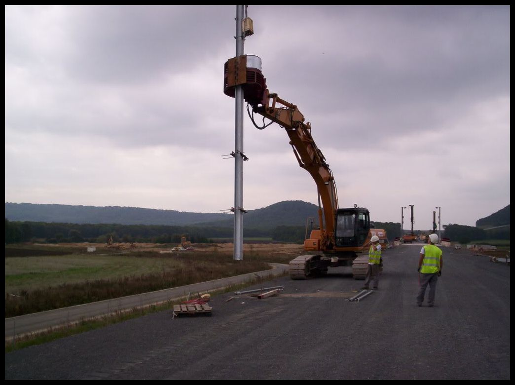 Voici quelques photos de pelles un peu spéciales servant aux forages et la pose des poteaux caténaires sur la LGV Est.