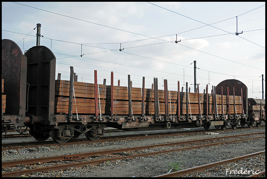 Voici le wagon plat à boggies pour le transport de traverses - 80 87 978 1 580-6 Uas R35 6 SNCF-LM