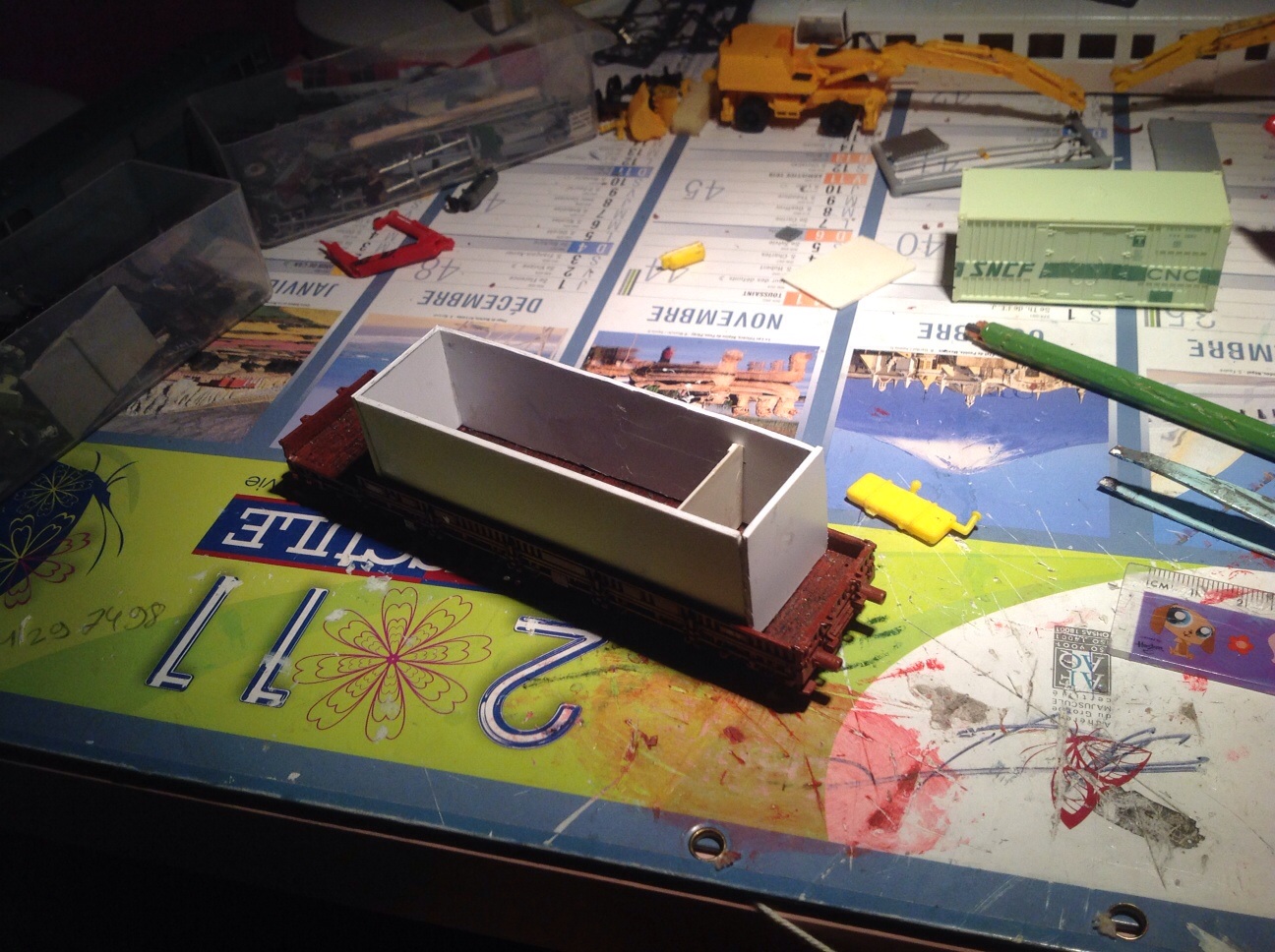 Voici une de mes dernière réalisation un wagon porte bungalow SNCF