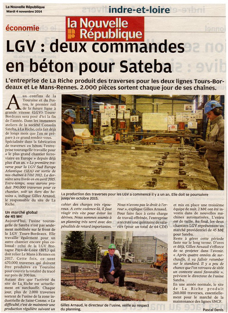 Voici l'entreprise Sateba de La Riche à Tours (37) qui produit des traverses en béton du système Vagneux pour la ligne