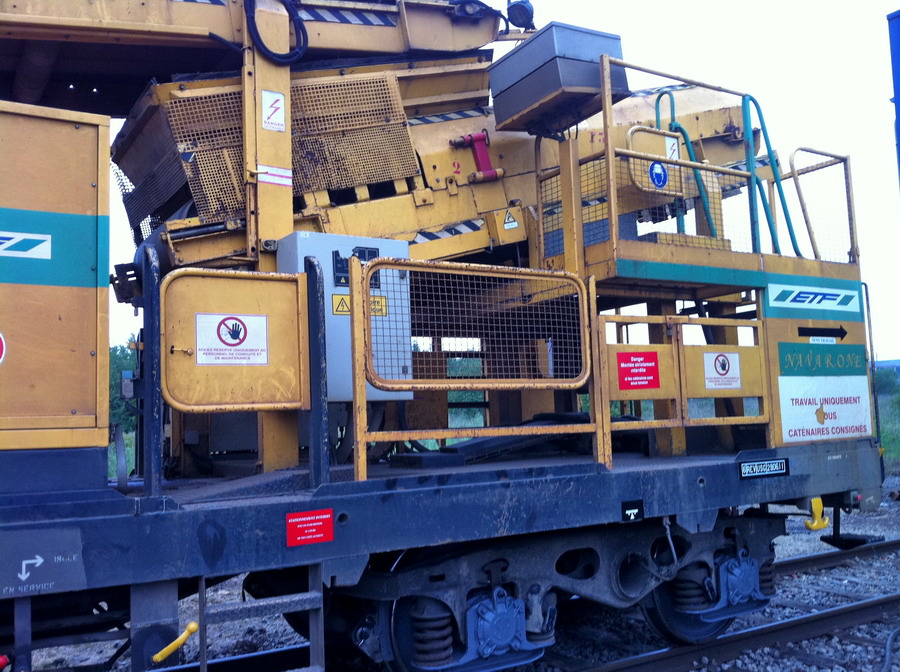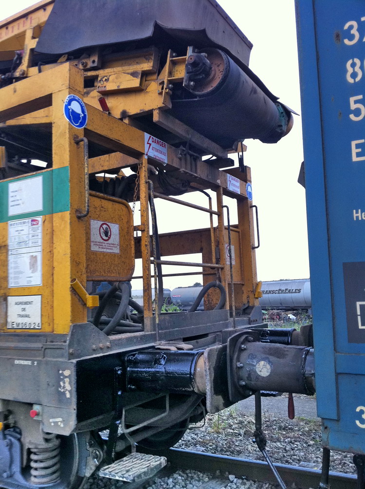 Plusieurs wagons énergie (appelés aussi tapis canon), destinés à fournir l'énergie nécessaire aux différents tapis se trouvant sur les tombereaux, sont positionnés dans le train de dégarnissage chargé du RVB entre Toulouse et Escalquens (automne 2007).