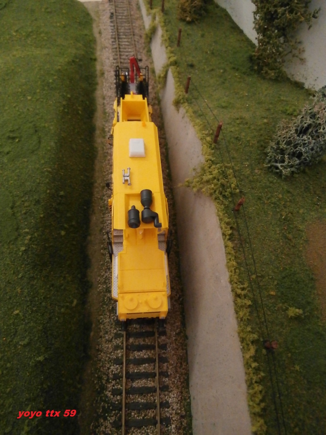 ) .Au loin un bruit de moteur attire mon attention .Je décide donc d'attendre sur le pont car le bruit de ce moteur ce fait plus intense .Et encre une surprise avec cette profileuse ( réalisation de Jean Claude ) qui arrive tout en ralentissant et qui s'arrête a ma hauteur .Avec cette arrêt ( normal le carré est fermé suite au passage de la DGS 62 N
