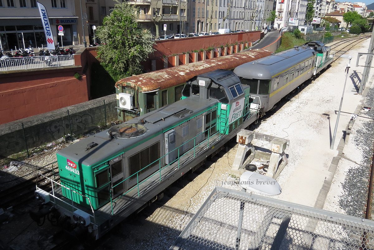 la voici en gare de St Saviol avec la BB 69452 (photo prise depuis le TER )