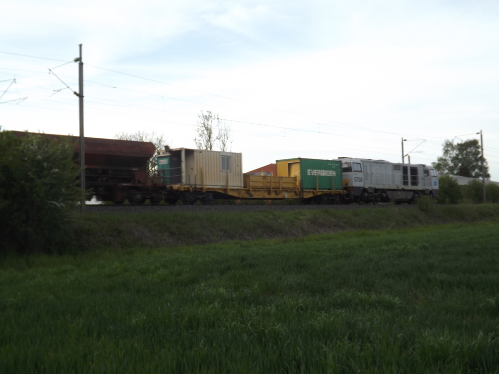 le 7/5/15 à Argiésans j'ai pu choppé les 5 trains de travaux qui se rend sur le chantier