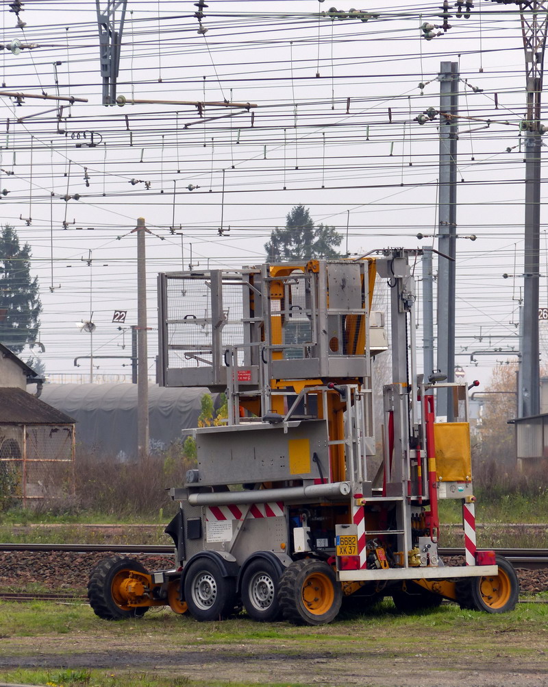 Le voici sur un chantier à Tours sur les lignes pour Nantes, Le Mans et Vendôme avec 2 autres 4'Axe le TR 61 au milieu et le TR 150 à droite