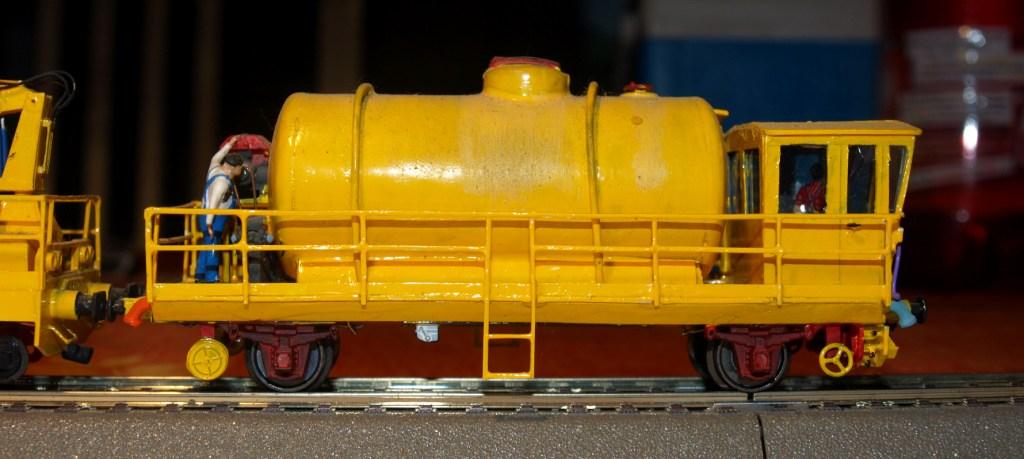 Le wagon était attelé en permanence à la draisine pour l'alimentation des feux rouges. En effet, je craignais que la proximité de vapeur d'essence F et du possible étincelage des capteur de courant ne fasse pas bon ménage et ne mette le feux sur le réseau.